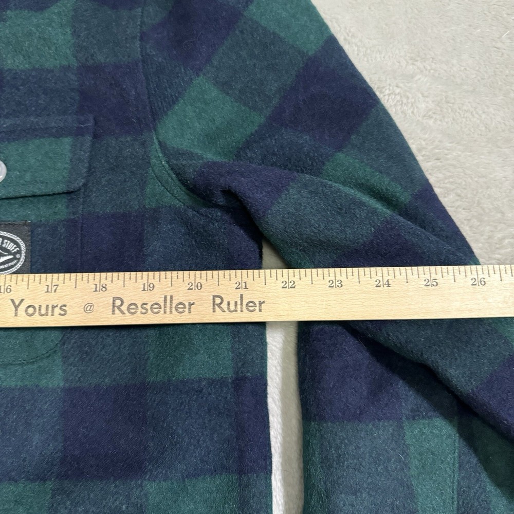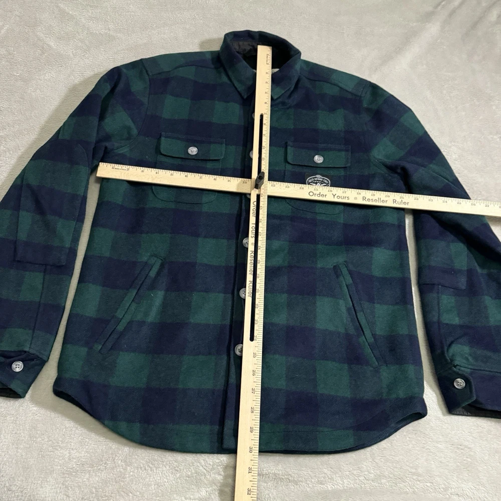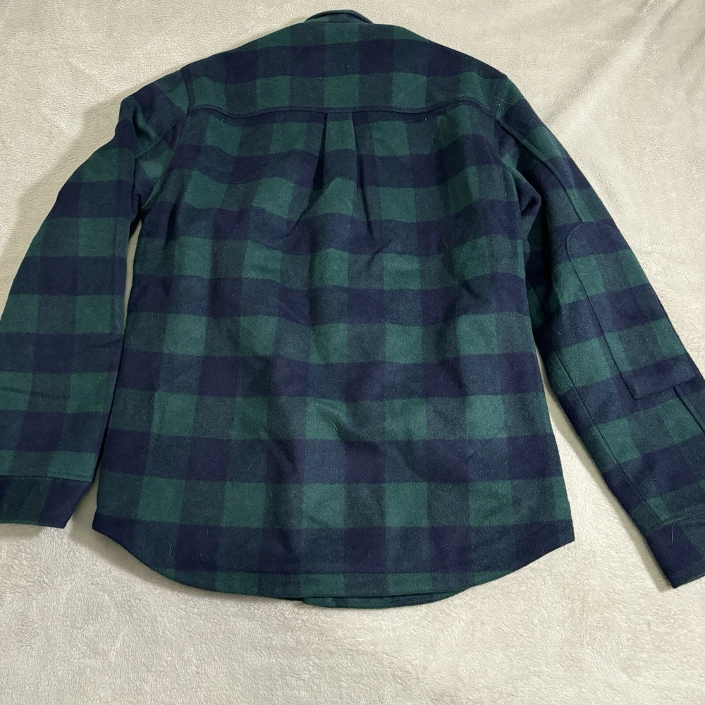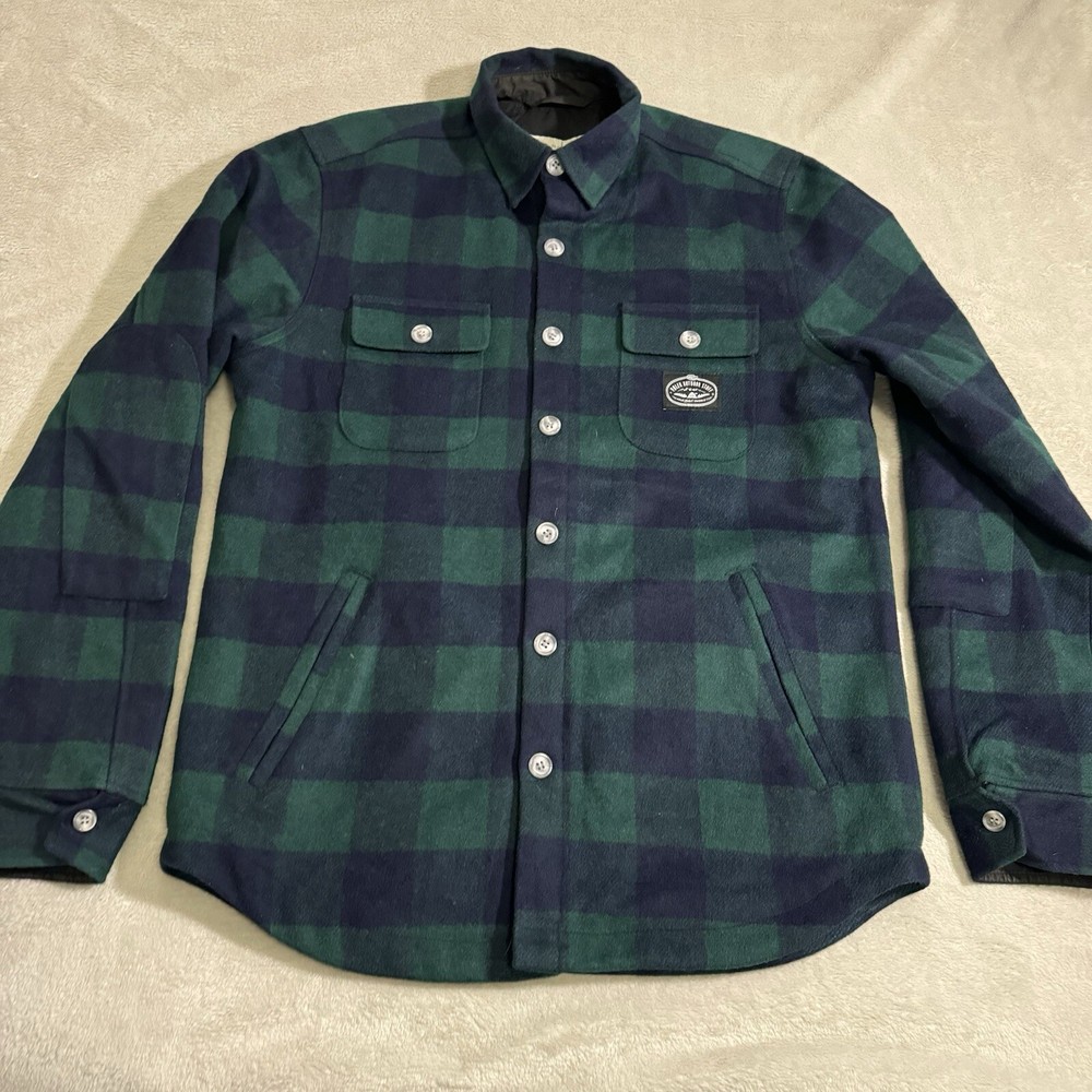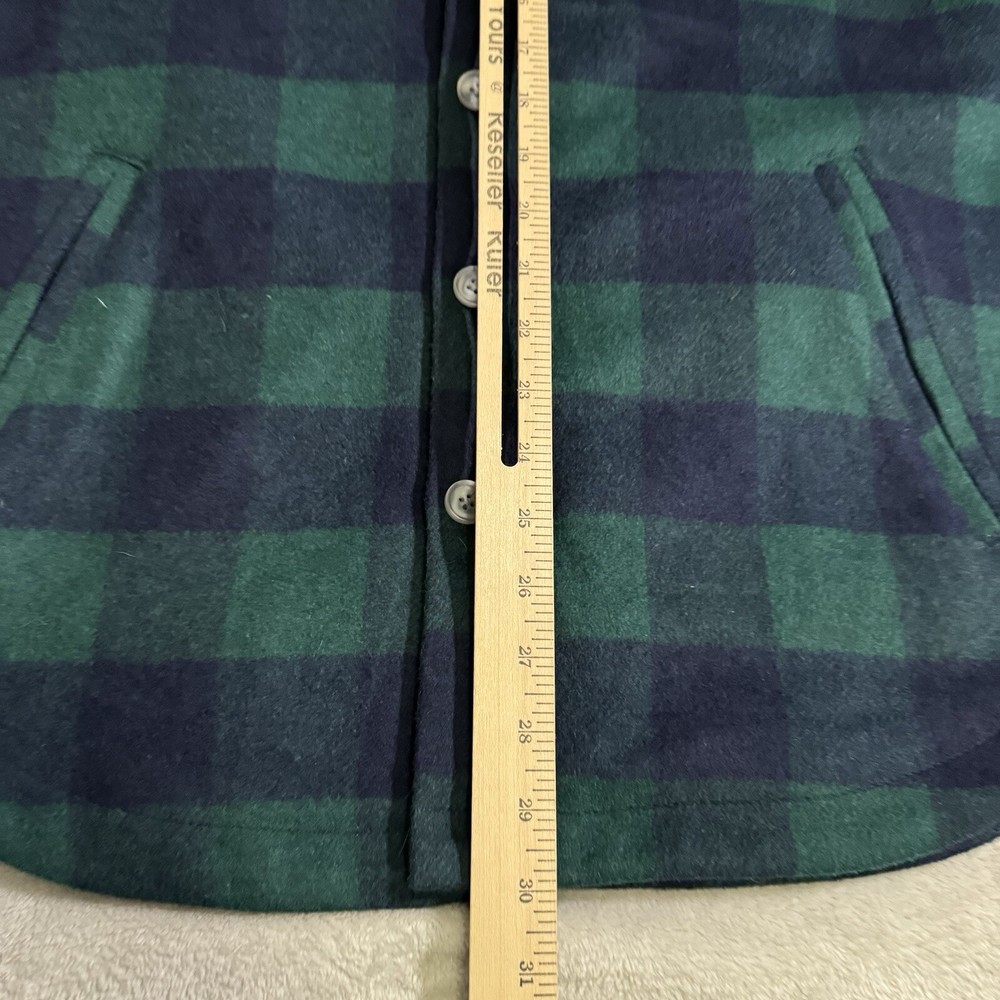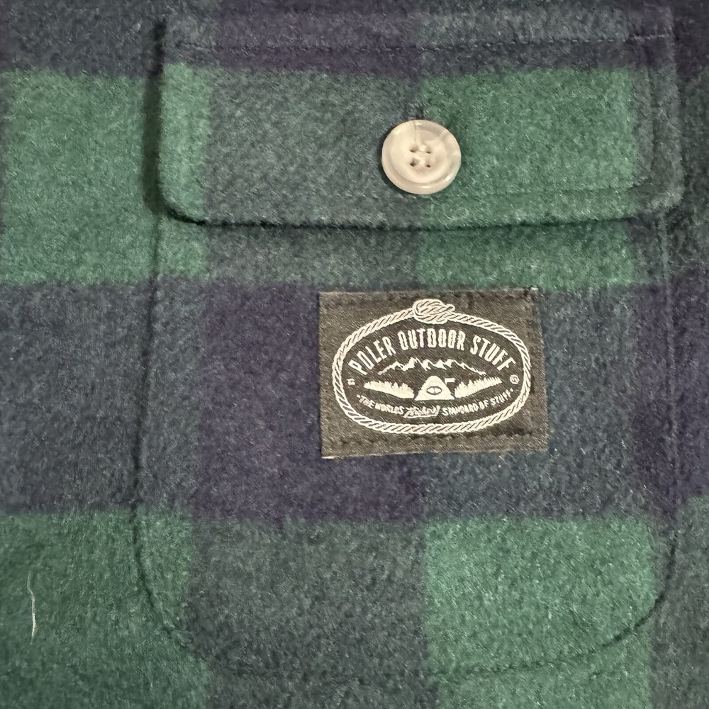 This Poler Outdoor Stuff Flannel Shacket in size M is the perfect addition to any outdoor enthusiast's wardrobe. The heavyweight wool blend fabric is both warm and durable, making it suitable for any outdoor activity. The plaid pattern and green color add a touch of style to this practical jacket. The jacket features a hood and is designed with a regular fit for men. Its outdoor style and theme make it perfect for any outdoor adventure. The flannel fabric type adds extra warmth and comfort. This jacket is a must-have for anyone who loves the outdoors.