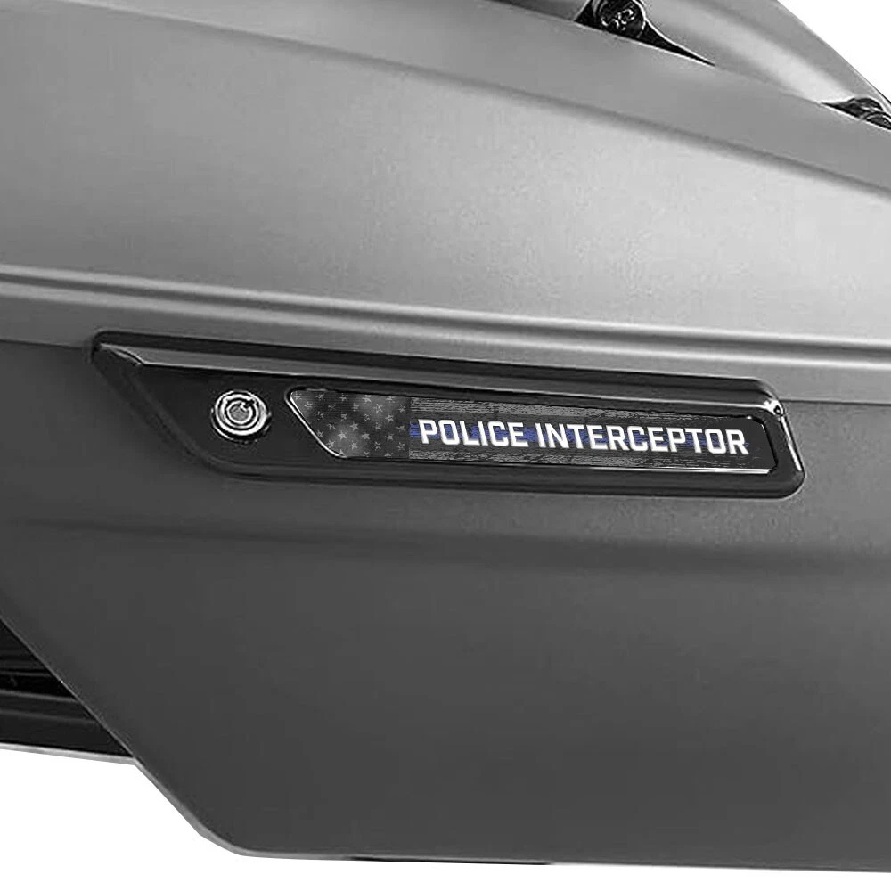 BLACK AND GREY POLICE INTERCEPTOR GHOST USA AMERICAN FLAG BLUE LINE SADDLEBAG LATCH COVER REFLECTOR INSERTS FITS 2014 AND NEWER HARLEY DAVIDSON TOURING MODELS LIKE ROAD GLIDE ROAD KING STREET GLIDE ULTRA GLIDE WITH STOCK SADDLEBAG LATCH COVERS AND OEM REFLECTORS REMOVED THIS IS A CUSTOM PRINTED PRODUCT AND IS NON-REFLECTIVE 2013 AND OLDER STYLE REFLECTOR INSERTS ALSO AVAILABLE IN OUR EBAY STORE SOLD IN PAIRS 1 X LEFT BAG AND 1 X RIGHT BAG INSERT IS MADE FROM HIGH QUALITY COMPOSITE PLASTIC MATERIAL INSERT COMES WITH HIGH BOND 3M PEEL AND STICK ADHESIVE ON BACK FEATURES HIGH GLOSS HIGH RESOLUTION PRINTED GRAPHICS UV & SCRATCH & WATER RESISTANT MATERIAL INSERTS ARE NON-REFLECTIVE CUSTOM DESIGNS AVAILABLE VIA SPECIAL ORDER AND PRE-APPROVAL OF ART DESIRED PROUDLY MADE TO ORDER IN THE USA! WE HAVE BEEN SELLING THESE PRODUCTS ON EBAY SINCE 2008! SADDLEBAG LATCH COVERS FOR EXAMPLE PRODUCT INSTALLED DISPLAY ONLY AND NOT INCLUDED IN PURCHASE TO SEE MORE OF OUR CUSTOM SADDLEBAG INSERTS CLICK HERE