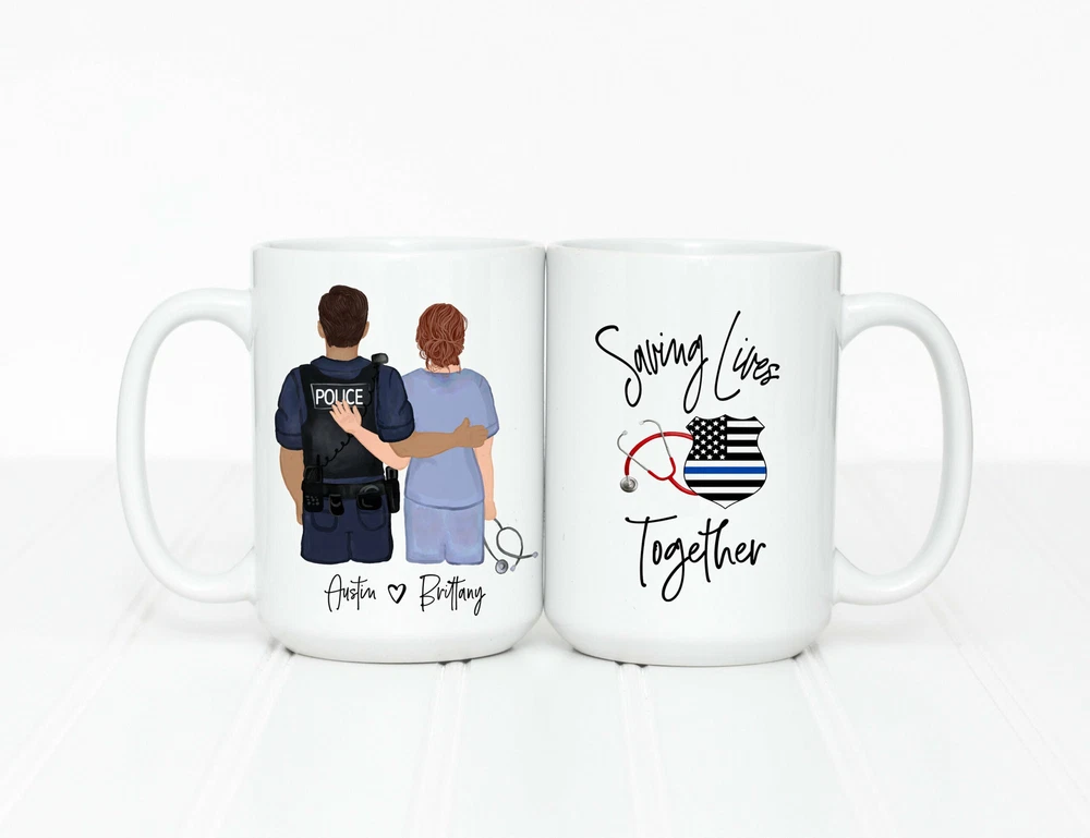 Police Officer Gifts Police Wife Police And Nurse Mug Police Coffee Mug Police Product Details.. This high quality 11oz. ceramic white mug has a premium hard coat that provides crisp and vibrant color reproduction sure to last for years. Perfect for all hot & cold beverages. The highest quality printing possible is used. It will never fade no matter how many times you wash it. Material: 100% Ceramic. Print both sides. Dishwasher and Microwave Safe. High Gloss + Premium White Finish. Printed in the U.S.A. Personalized & Custom. We support personalized and custom mug to add custom, when placing an order, you can add notes to the "order note" in shipping address section. Also you can contact us directly via message. Shipping Info. Ready to ship in 1 to 2 business days, All products are made-to-order and proudly printed in the United States. Shipped by USPS and DHL, You will receive your order in 5-7 days. Replace & Refund. All products are defective during shipping broken, chipped will be replaced free of charge. You are not satisfied with the product, we will refund 100% money to you. If any other issues arise, please do not hesitate to message, we would be more than happy to assist you.