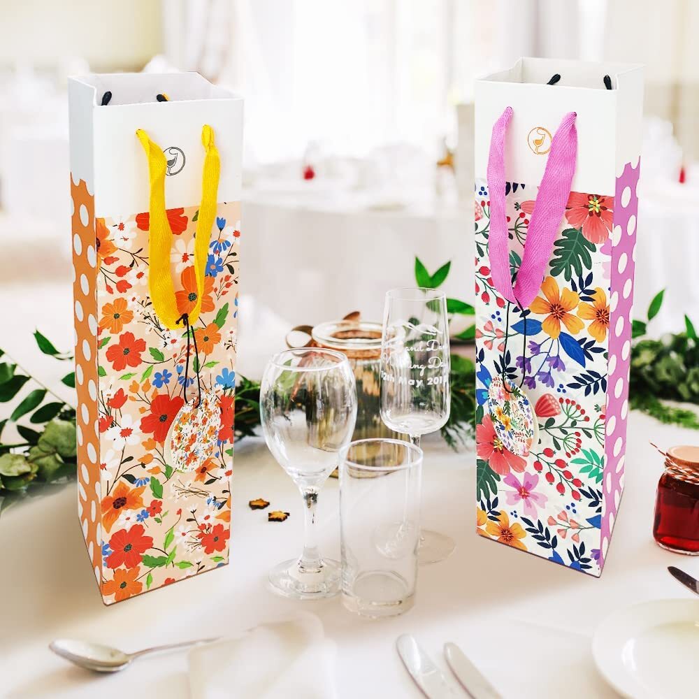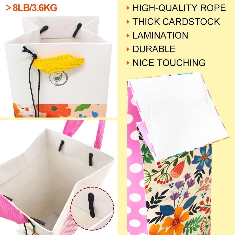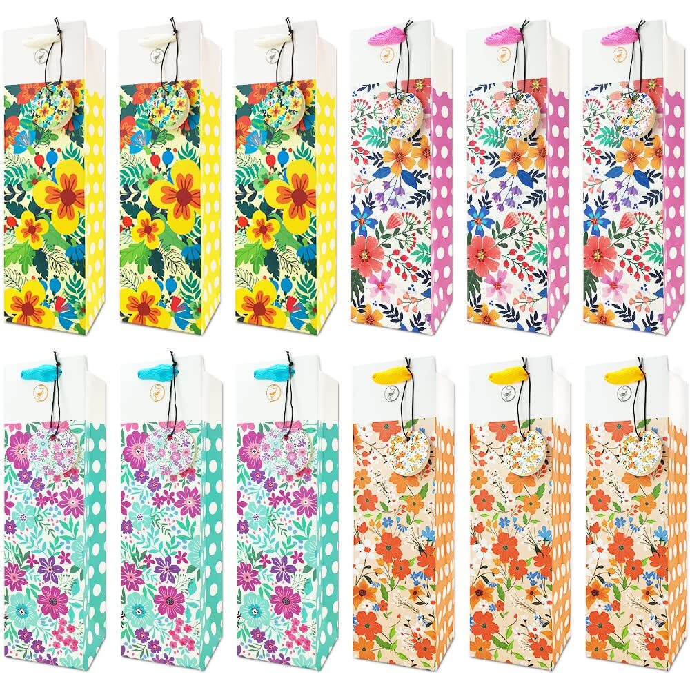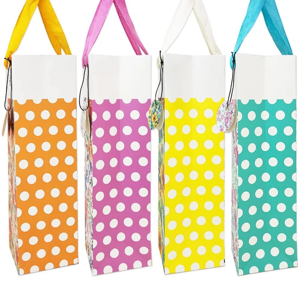 Amazing Deals Await! Welcome to my stores, The Smart of your choice and satisfaction guarantee. 12-Packs Polka Dot Floral Wine Gift Bags with Handle and Tags, Paper Single Bottle Carry Bag 4 colors Bulk, 13.4x3.9x3.9 Perfect for Christmas, Birthday, Anniversary, Wedding, Santa Product Overview 12-Packs Polka Dot Floral Bottle Wine Gift Bags with Handle and Tags, 4 Designs Assorted Heavy Duty Strong Paper Material Size: 13.4 x 3.9 x 3.9 Inch, Perfect fit with regular 750ML-1.5L wine bottle and champagne bottle. Handle: Sturdy Soft ribbon Handle ensure your precious gift bottle safe and secure. Tags: Original American Designer Artwork, Blank Back Side for message and text writing. Feature: Color: 100% safe, nontoxic, natural soy-based ink with professional offset printing for long-lasting vivid color. Material: 110lb / 300gsm heavy weight paper with matte lamination can hold up to 8 pounds / 3.5 kg Add to cart and check out the real product shortly. You have 30 days to initiate a return with a full refund after purchase. TIP: Push your hand into the bag to open fully before putting bottle in! Key Features Good Value Pack: Includes 12 wine bags with tough matte finished lamination, total with 4 charming colors mix unique polka dot floral designs: blue, yellow, pink, purple. 3 bags of each color. TIP: Push your hand into the bag to open fully before putting bottle in! Dimensions: 13.7 x 3.9 x 3.9 inches, each carry bag hold a single wine bottle or champagne bottle 750ML-1.5L. Each paper bag can hold up to 8 pounds/3.5 kg. Exclusive Quality: 110lb / 300gsm thickness cardboard paper with matte lamination, heavy duty paper material: Durable for sure. Each bag has a soft ribbon handle that made of high-quality material: Make sure your precious gift bottle safe and secure. Versatile: Original design matching-color tags with blank side for message and text. suitable for any events & festivals, such as Christmas, Thanksgiving, Birthday, Xmas Eve, Santa Claus mascot, Home Dinner Party, Housewarming, New Year, Graduation, Business Presents, Wedding, Anniversary, Bachelorette, Engagement & Baby Shower. Payment Guidelines ⦿ Payment is processed through eBay's secure system. ⦿ We accept PayPal and major credit cards. Shipping Information ⦿ We ship to the address provided at checkout. Please verify your address before placing your order. ⦿ Orders are processed within 1 business day (excluding weekends and holidays). ⦿ Delivery typically takes 3-5 business days. ⦿ We use reliable carriers such as UPS, FedEx, and USPS. ⦿ Shipping is available only within the contiguous United States. No shipping to Alaska, Hawaii, Puerto Rico, or PO Boxes. ⦿ If you experience any delays, please reach out to us for assistance. Return Policy ⦿ We offer a 30-day money-back guarantee. ⦿ If you're not satisfied with your purchase, you can return it for a full refund. ⦿ Please contact us for the return address before sending any items back.