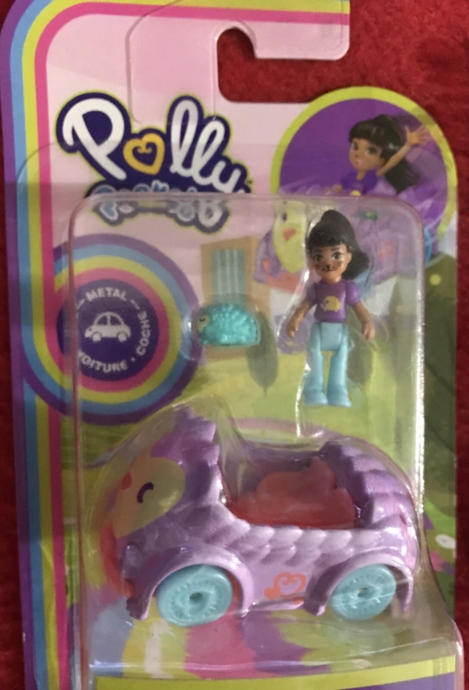 Polly Pocket Micro Doll w/ Hedgehog Themed Diecast Metal Car & Mini Pet + Extras