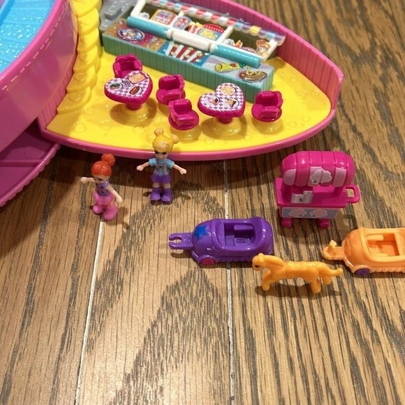 Polly Pocket Theme Park Backpack Compact with 2 Dolls Accessories Missing: one golf club and golf balls