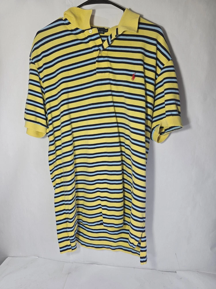 Polo By Ralph Lauren Mens XL Yellow Blue Short Sleeve Polo Golf Shirt