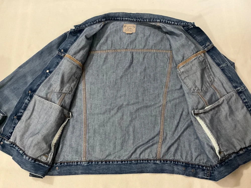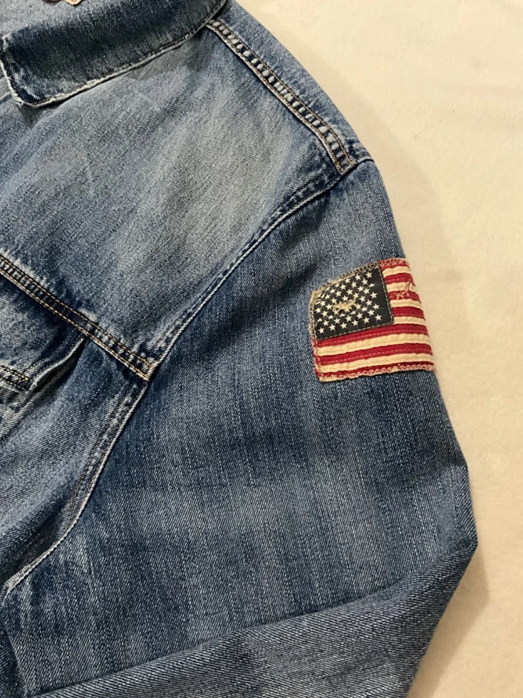 Fall is here and we all could use another layer to put on. Finish your outfit with this timeless Ralph Lauren denim jacket. Preowned in pristine condition, not showing any signs of wear. Size 2XB (big and tall 2xl). Has American flag patch on left shoulder. Measurements are provided in pics description. Comes from smoke and pet free home. Worn 2 seasons. Check my other listings for more designer Ralph Lauren pieces. Make a great Christmas present for brother , husband , father , friend. Combined shipping accepted.