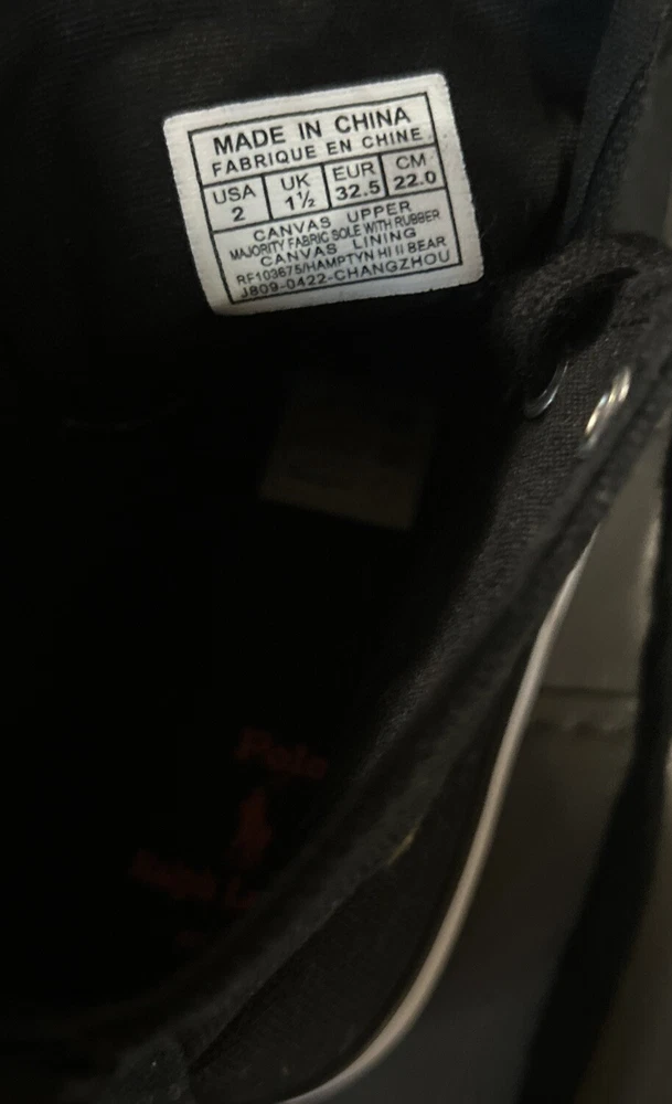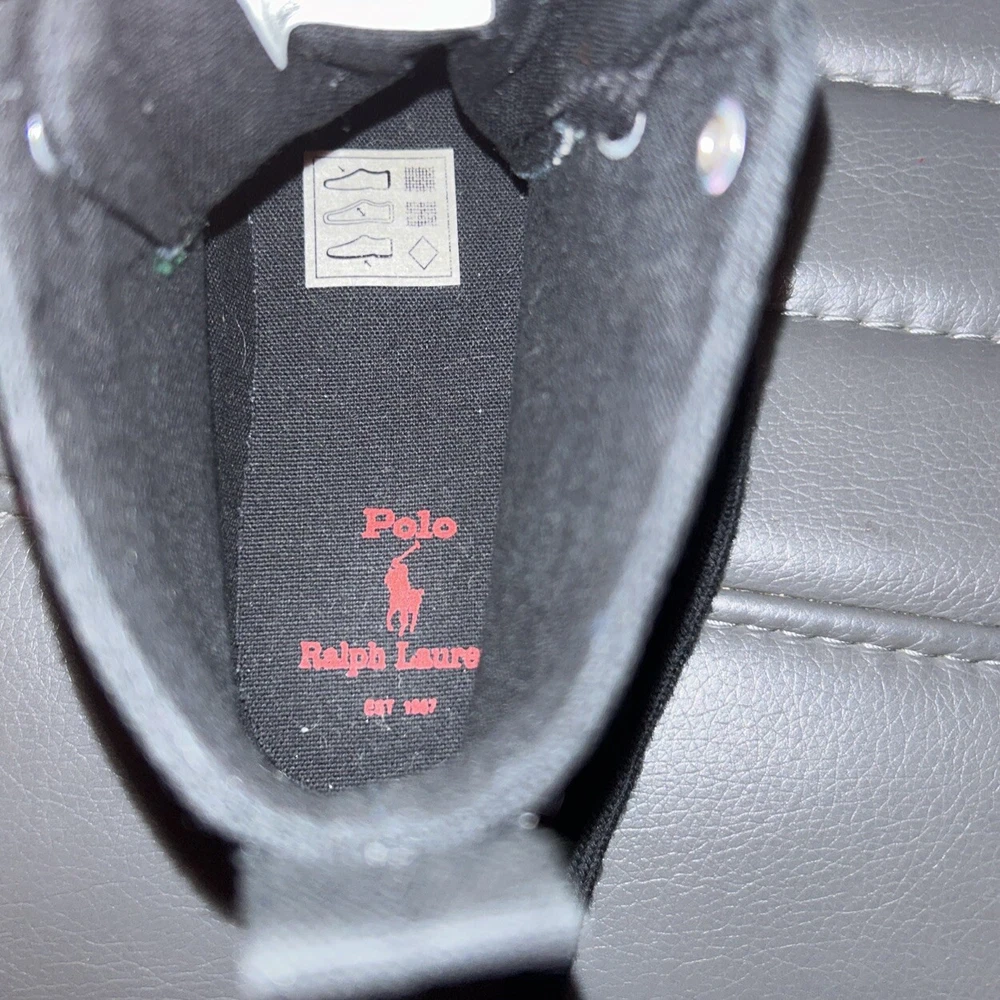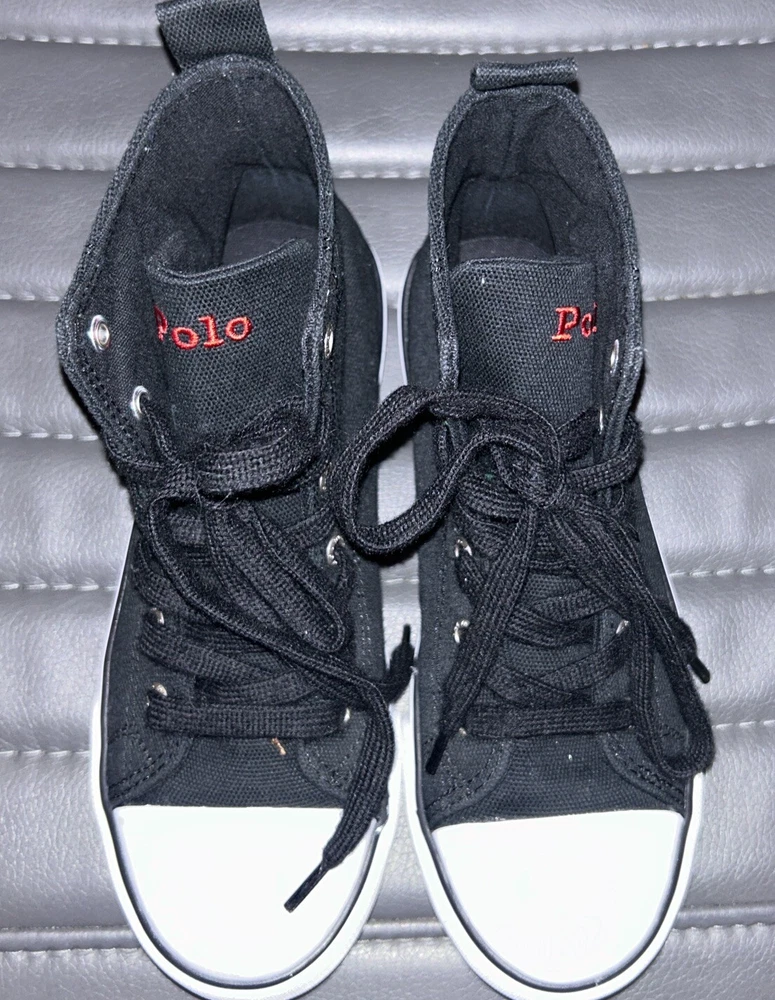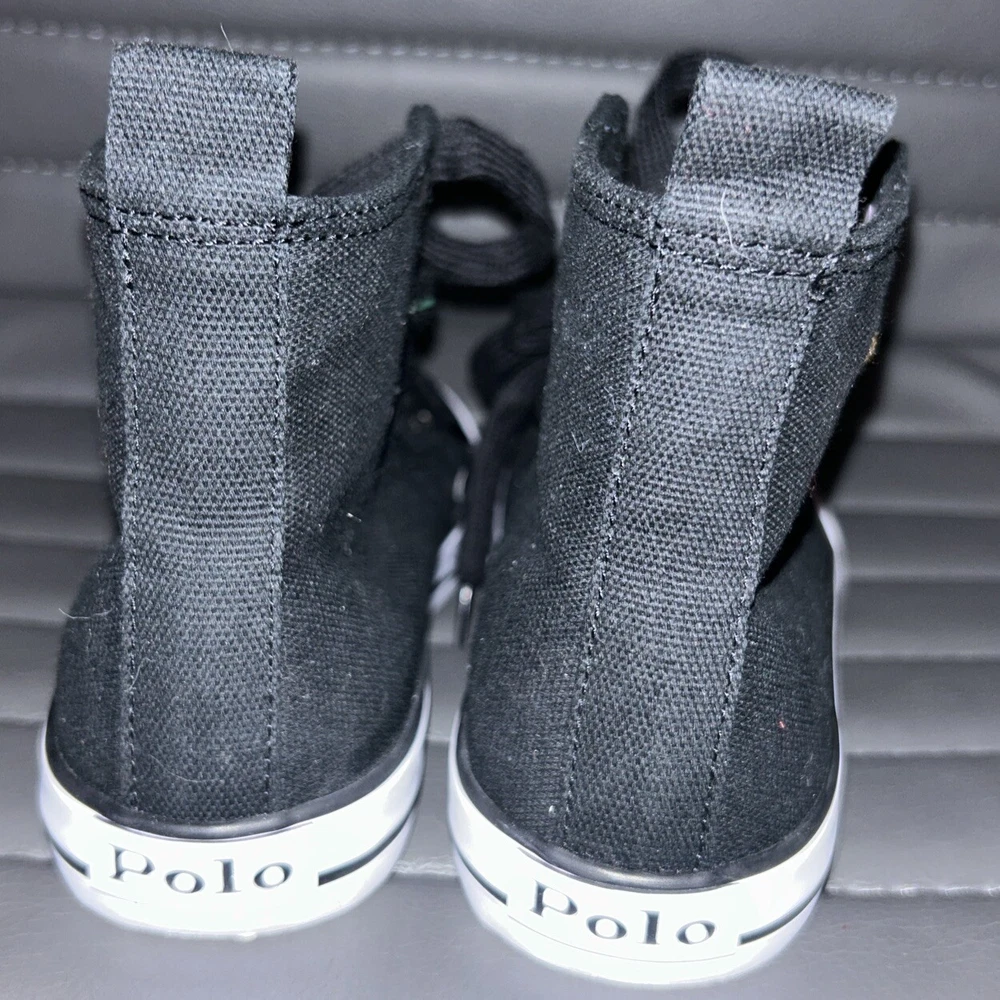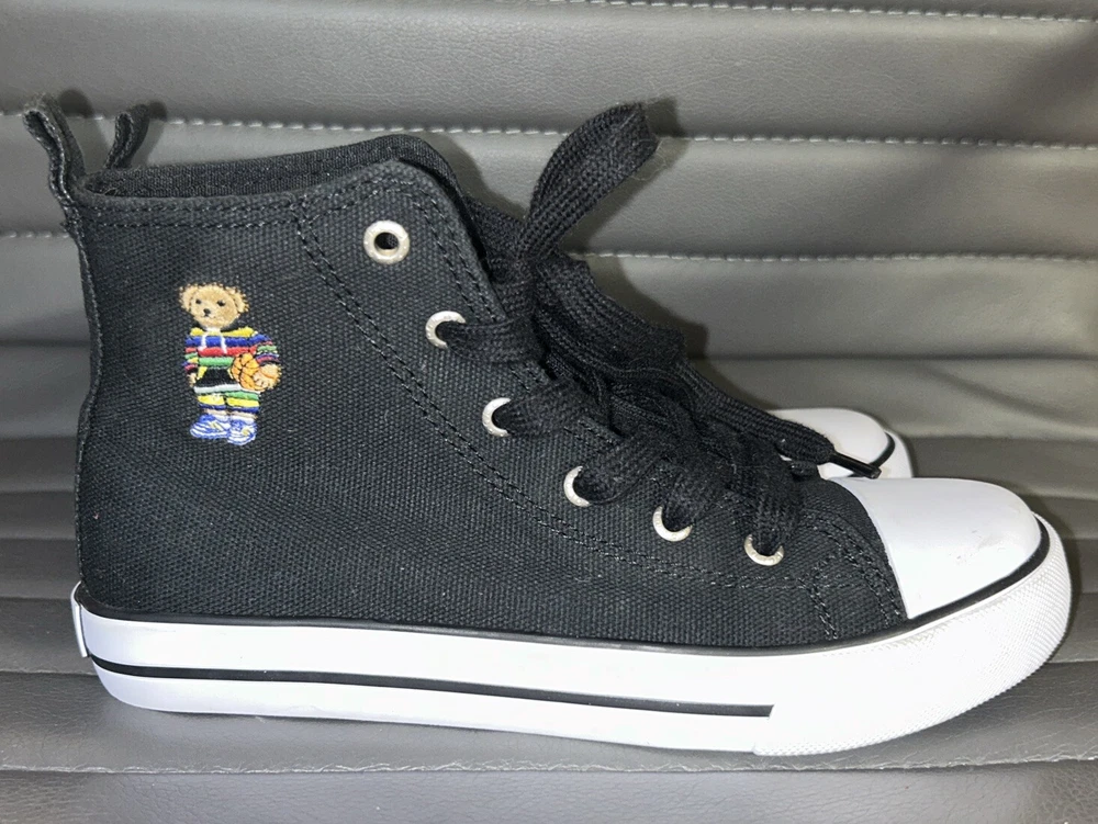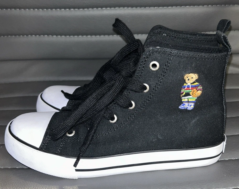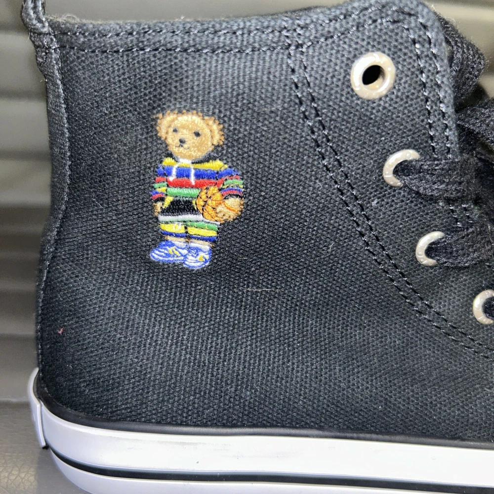 Polo Ralph Lauren Bear Black Canvas Kids High Top Sneaker Shoes Size 2