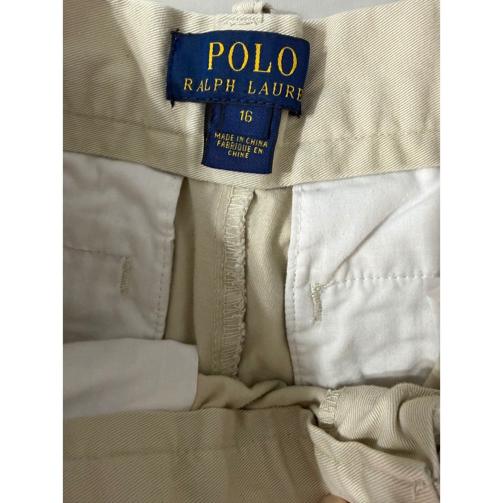 Department: Boys Style: Chino Occasion: Casual, Business Vintage: No Brand: Polo Ralph Lauren Season: Summer, Spring Fit: Classic Country of Origin: China Material: Cotton Closure: Zip Fabric Type: Twill Color: Beige Pattern: Solid Front Type: Flat Front Garment Care: Machine Washable Performance/Activity: School, Walking, Golf Size: 16 Features: Pockets