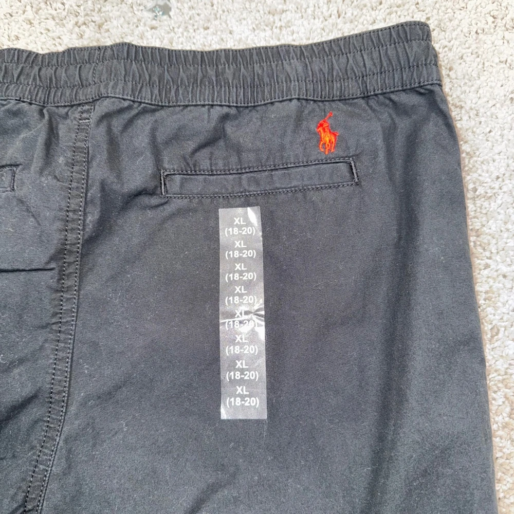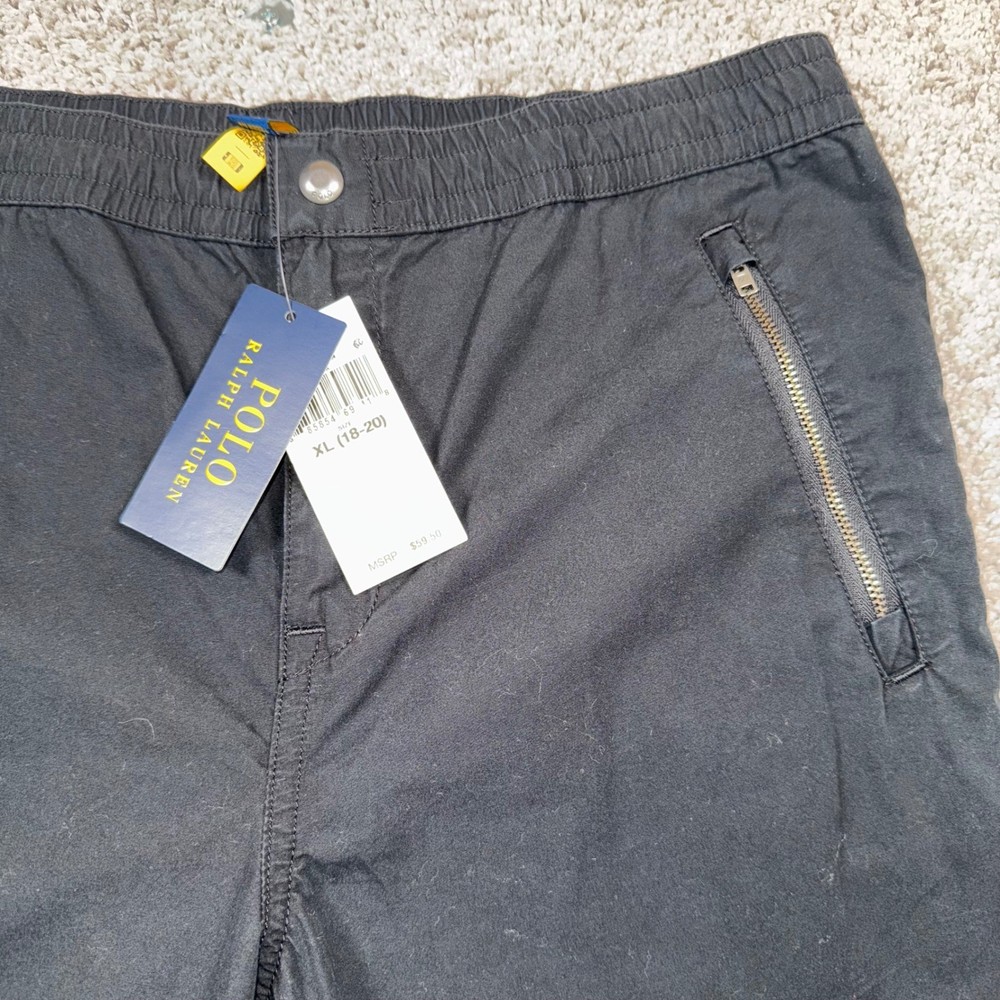 Elevate his everyday adventures with these versatile Polo Ralph Lauren Cotton Poplin Jogger Pants. Crafted for comfort and durability, these pants feature a sleek black hue perfect for any occasion. The elastic waistband and cuffs ensure a secure and comfortable fit, while the zippered pockets add a touch of modern style and practical storage. These joggers are ideal for school days, weekend outings, or simply relaxing at home. Measurements: • Waist: 31 in (unstretched) • Inseam: 31 in Style: Jogger Department: Boys Fabric Type: Poplin Performance/Activity: Play, School, Walking Material: Cotton Type: Pants Closure: Pull On, Drawstring Occasion: Casual, Activewear Features: Pockets, Adjustable Waist, Elastic Waist, Lightweight Fit: Relaxed Pattern: Solid Season: Spring, Summer, Fall Keywords: Polo Ralph Lauren Kids, Boys Joggers, Cotton Pants, Black Joggers, Zipper Pockets, Elastic Waistband, Casual Pants, Activewear, School Uniform, Playwear, Comfortable, Durable