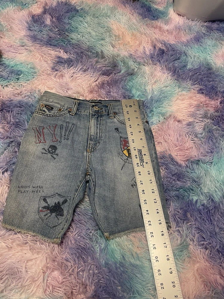 Elevate your boy’s summer wardrobe with these Polo Ralph Lauren Boys Graffiti Slim Fit Denim Shorts. The blue Bermuda shorts are perfect for a day out with friends or a family vacation. The slim fit design is crafted with high-quality denim fabric that provides comfort and durability. The shorts come in size M 10-12 and are ideal for boys who love to stay stylish and comfortable at the same time. The graffiti design adds a touch of fun and playfulness to the overall look. These shorts are a great addition to any boy’s summer wardrobe and are sure to make a statement.