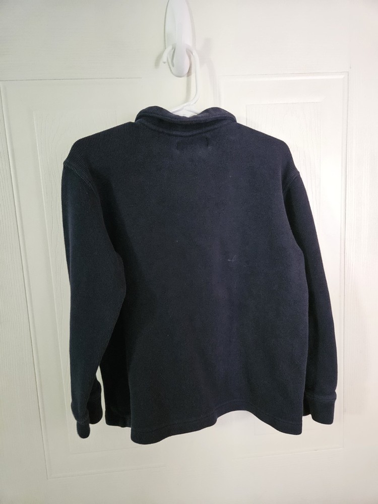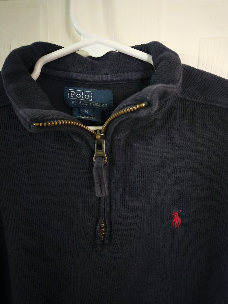 This Polo Ralph Lauren Boys Size 6 Classic Navy Blue Quarter Zip Pullover Sweatshirt is a stylish and comfortable addition to any boy's wardrobe. Made from a breathable cotton blend material, this sweatshirt features a classic navy blue color and a quarter zip closure for easy on and off. The pullover style, along with the hipster, holiday, classic, and preppy themes, make it a versatile piece that can be worn for various occasions. Perfect for keeping boys warm and looking sharp during the colder months.