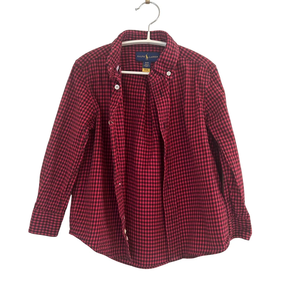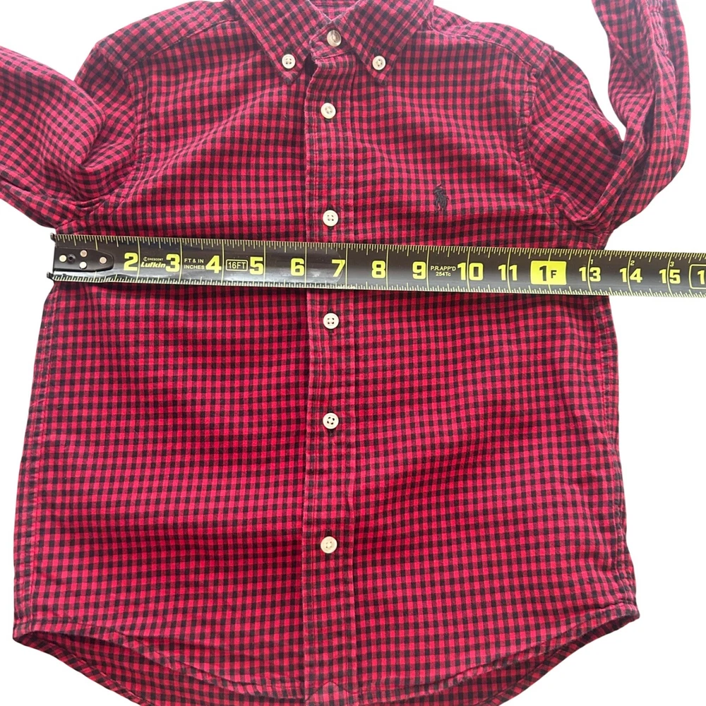 Polo Ralph Lauren long-sleeve button-down shirt in a classic red and black gingham pattern. Crafted from 100% cotton, this sport shirt features a button-down collar, buttoned cuffs, and the signature embroidered pony logo on the chest. The timeless checkered design makes it a versatile piece for both casual and semi-formal occasions. Measurements: • Pit to Pit: 13" (26" doubled) • Length: 18.5" Keywords: Gingham, Checkered, Preppy, Classic, Cotton, Sport Shirt, Holiday, School, Casual, Traditional, Timeless, Buffalo Check Brand: Polo Ralph Lauren Product Type: Button-Down Shirt Material: 100% Cotton Color: Red, Black Pattern: Gingham/Check Sleeve Length: Long Sleeve Collar: Button-Down Closure: Button Front Accents: Embroidered Logo Country of Manufacture: India Style: BDPPC LS SPT-SHIRTS Season: All Season All items come from a smoke free, golden retriever dog friendly home. All of items unless NWT or Dry Clean Only are washed with Tide. We try our best to disclose any flaws with items, if we miss something please reach out and let us know.