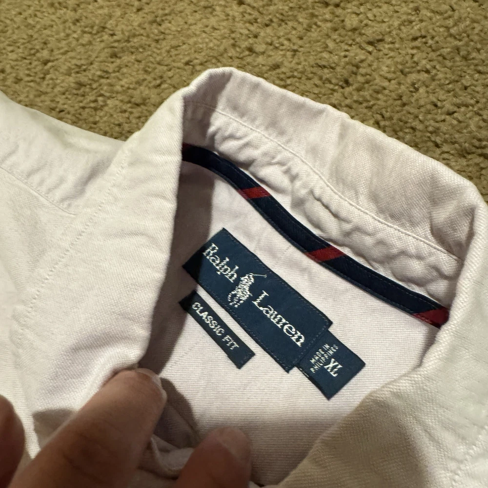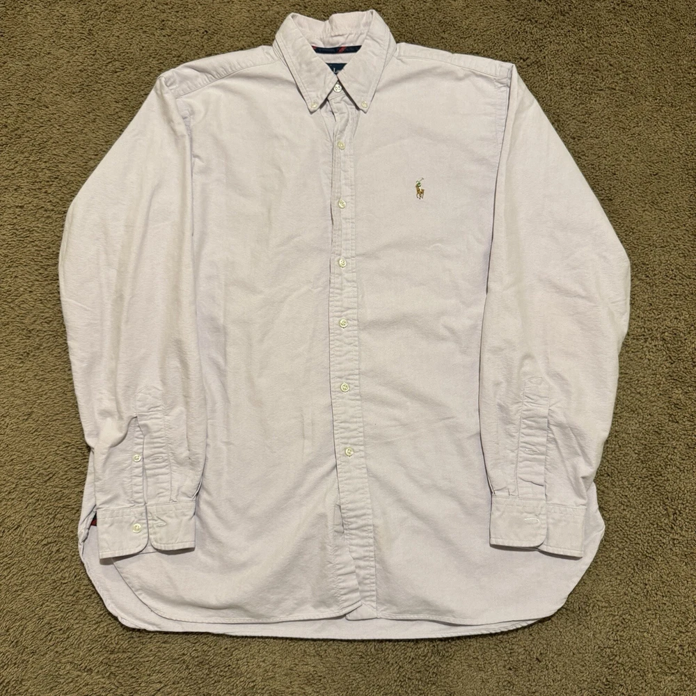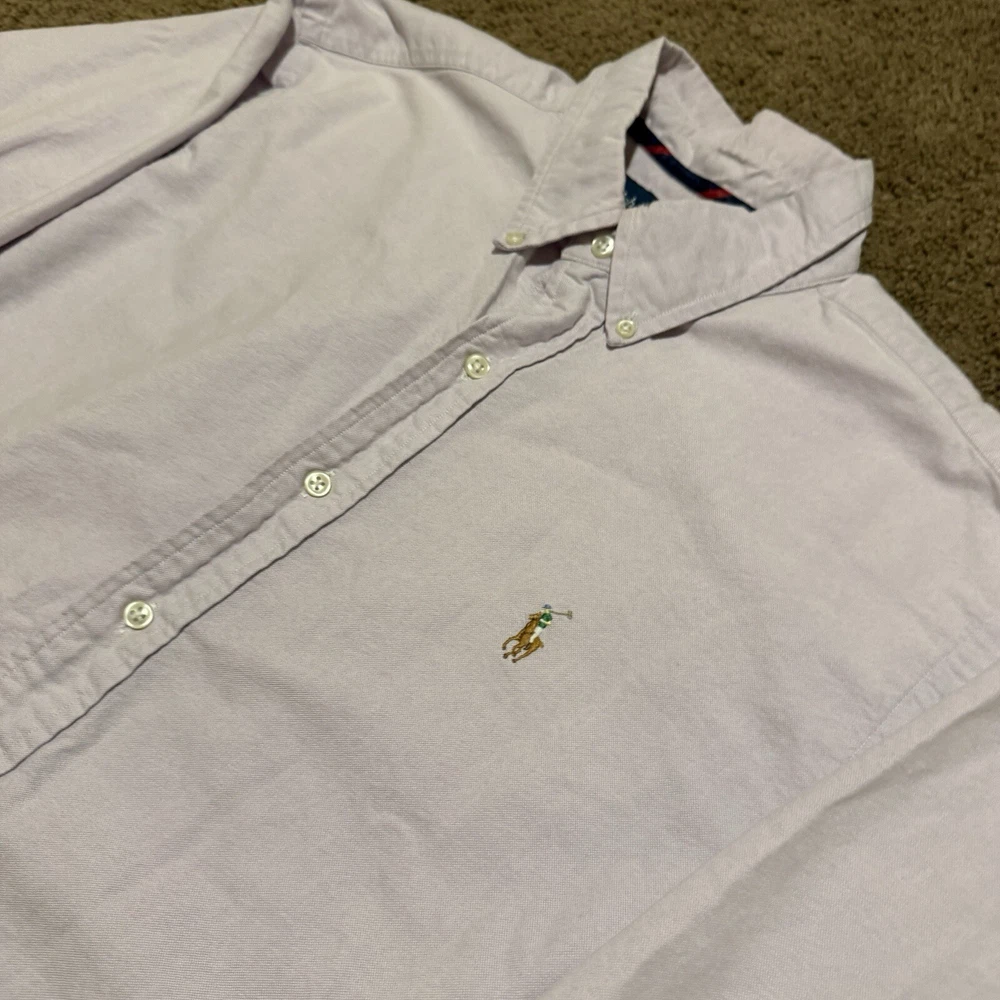 Polo Ralph Lauren Button Down Shirt Mens XL Classic Fit White Long Sleeve Pony Colored pony. Not sure about the color of the shirt it does look a little white in the photo, but I think it looks like a light pink and purple and mixed with white Condition: good condition Please message if you have any questions :)