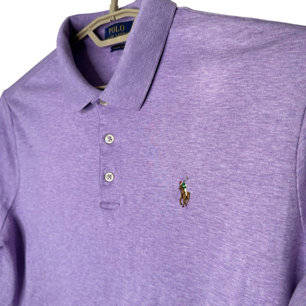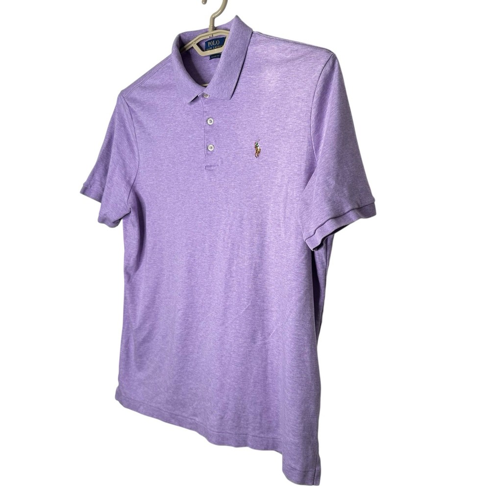 Polo Ralph Lauren Classic Fit Soft Cotton Purple Short Sleeve Polo Shirt Great Condition - has a tiny hole on the front- see last picture Size LARGE 100% Soft Cotton Tan Pony Logo Pit to Pit - 23 1/2" Shoulder to Bottom - 28" FAST SHIPPING