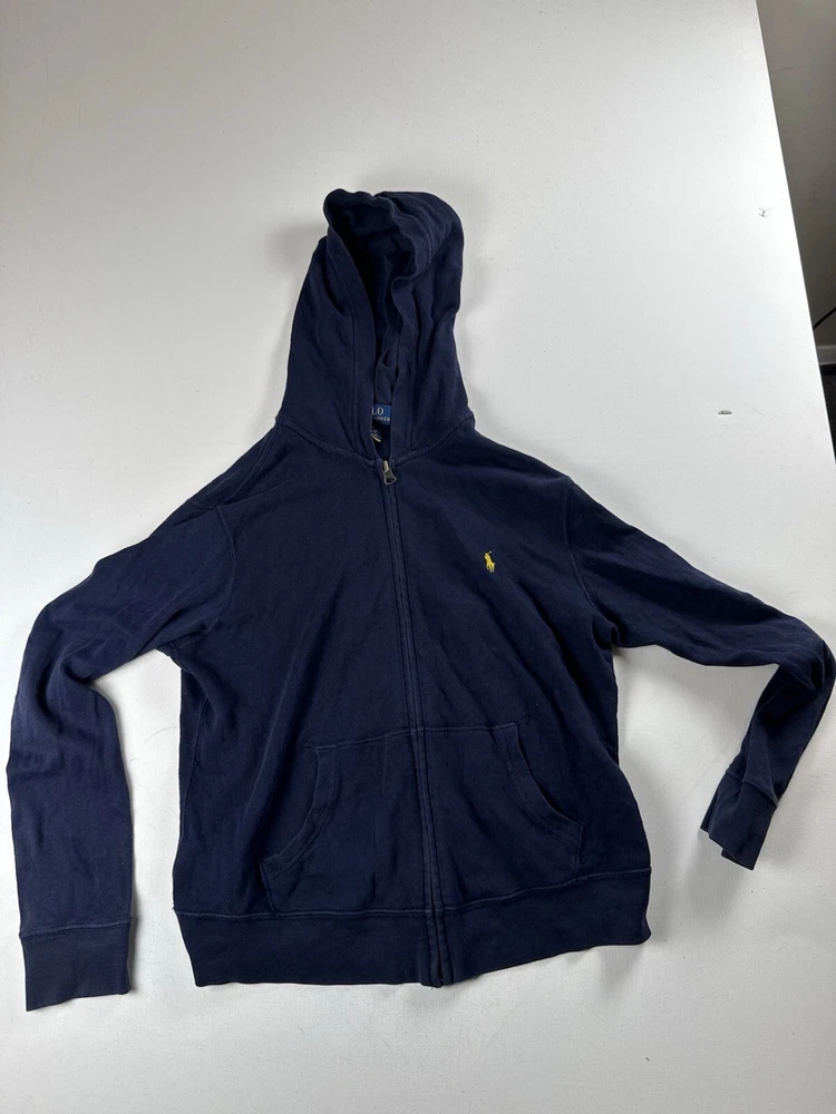 Polo Ralph Lauren Hoodie Boys Medium 10-12 Black Youth Full Zip Up Logo