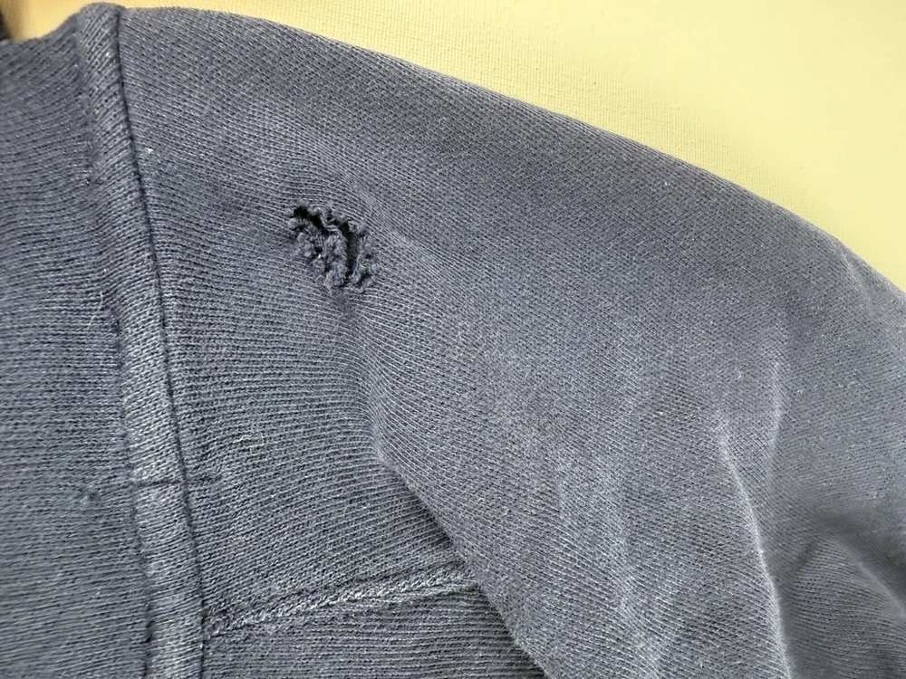 item is pre owned has small hole on back of hood 5632