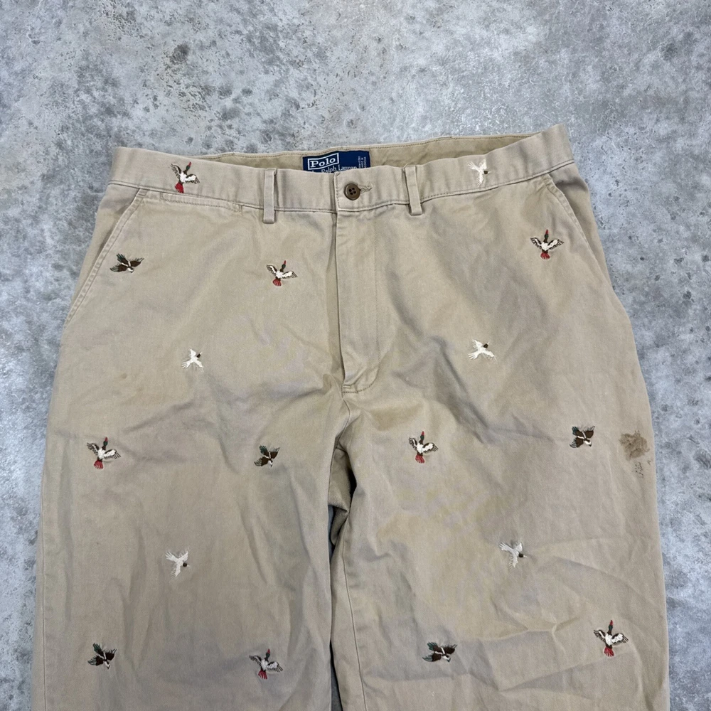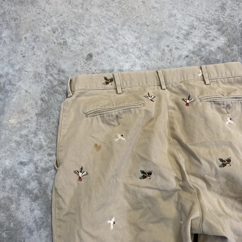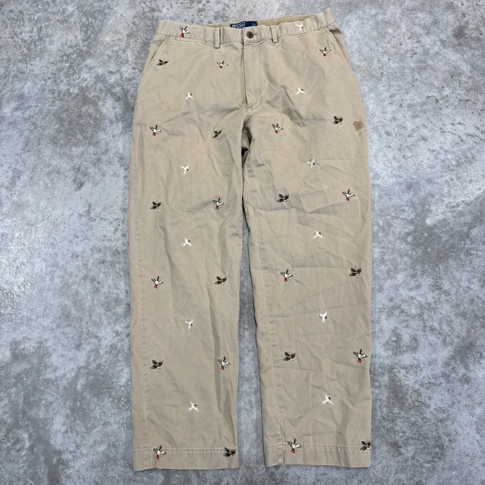 Polo Ralph Lauren Khaki Pants Mens 34x30 Embroidered Ducks Chino Sportsman Vtg There is staining see pics