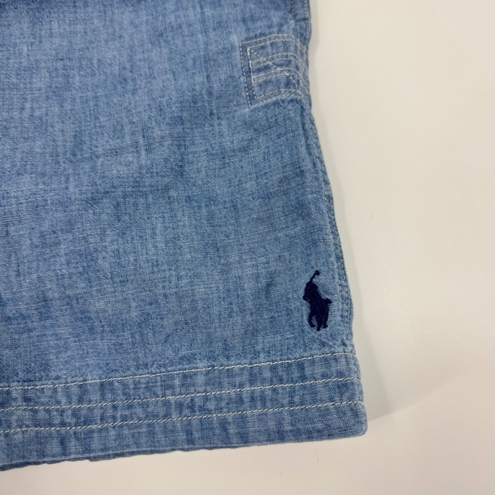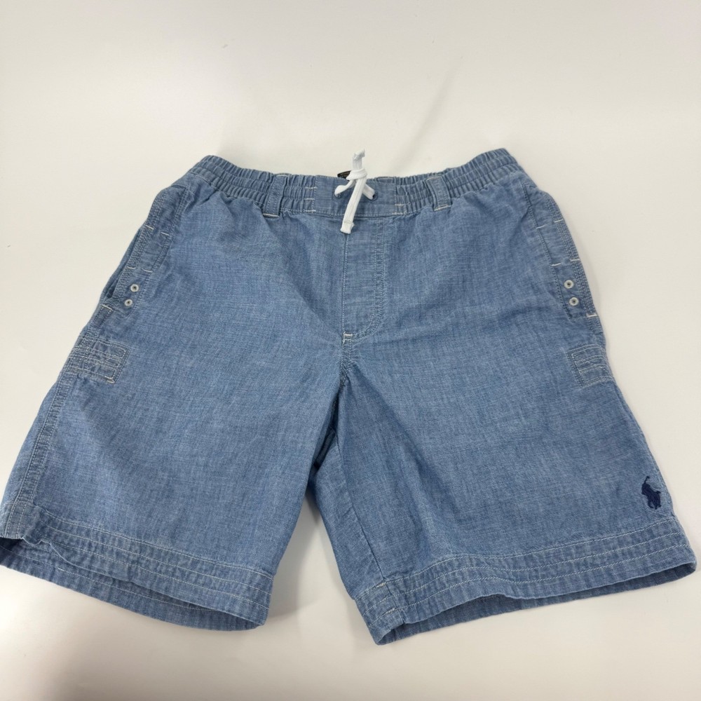 Polo Ralph Lauren boys chambray shorts in a light blue wash. Elastic waistband with a functional white drawstring closure for a comfortable and adjustable fit. Features side pockets and a back patch pocket for practicality. Embroidered navy blue Polo pony logo on the lower left leg. Perfect for everyday wear, playdates, or casual Department: Boys Style: Cargo Performance/Activity: School Fabric Type: Chambray Fit: Regular Material: 100% Cotton Front Type: Flat Front Occasion: Casual, Activewear Theme: Logo Features: Elastic Waist, Drawstring, Pockets Pattern: Solid Closure: Drawstring Inseam: 6 in Season: Summer, Spring Keywords: Polo Ralph Lauren, chambray shorts, light wash, elastic waist, drawstring, embroidered logo, casual shorts, boys size 14-16, summer shorts, playwear, school uniform, everyday wear, comfortable, versatile THANK YOU FOR VIEWING MY LISTING! Items are sold "AS IS". Please read all details in listing and review photos. Ask questions BEFORE purchasing. Photos are of actual items. Shipping services cannot be guaranteed. Shipments will ONLY be made to the verified address on file. Follow me and come back!