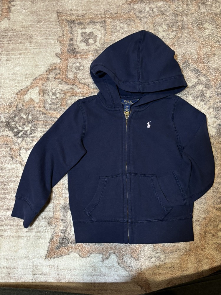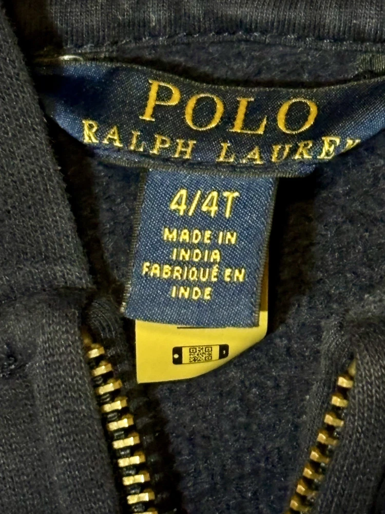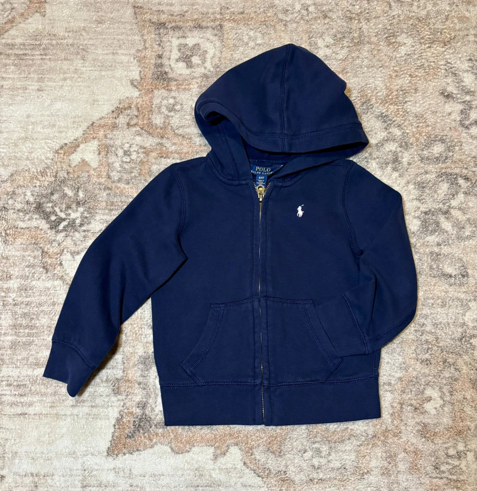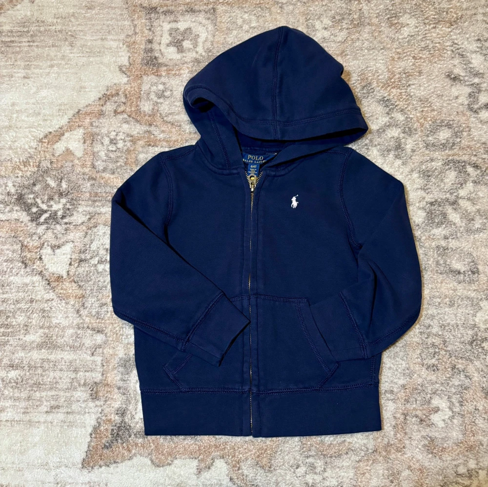 Polo Ralph Lauren Kids Navy Blue Full Zip Hoodie White Pony Logo Size 4T
