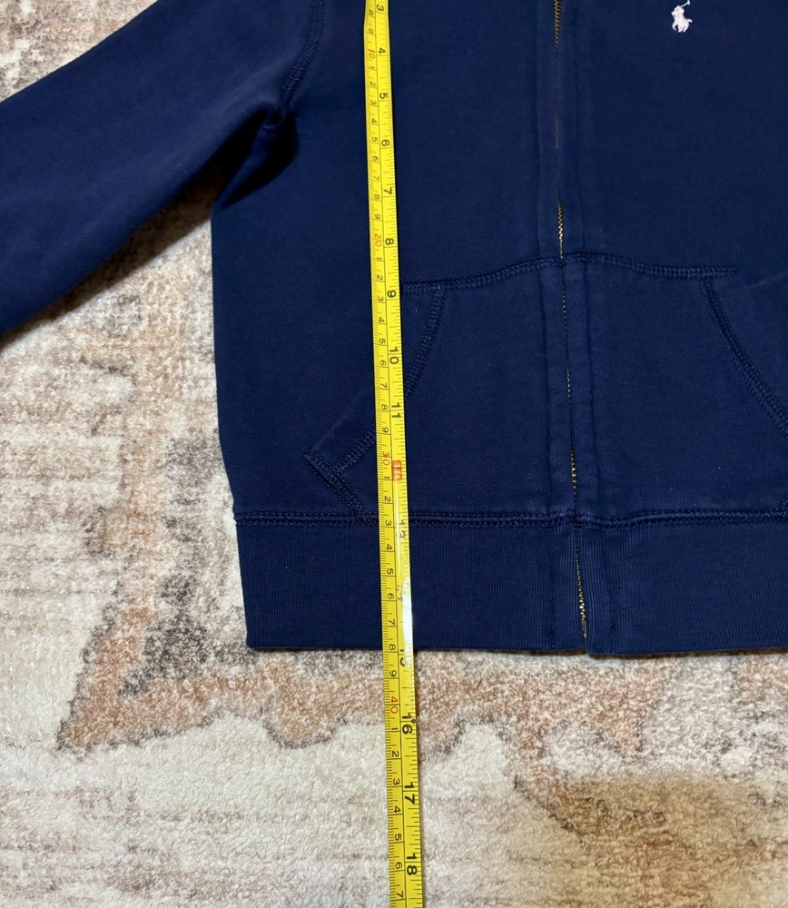 Made from a soft brushed fleece, the Polo Ralph Lauren® Kids Cotton-Blend Terry Hoodie features a classic pony logo on the left chest, an attached hood, and a comfy fit that he can't resist. Long sleeves, a full-zip front closure, and split kangaroo pockets complete the look! "Gently used, good condition. No rips, stains, or tears. Shows minor, normal wash wear. From a smoke-free home." The zipper has been tested and works perfectly from top to bottom. No flaws, no snags.