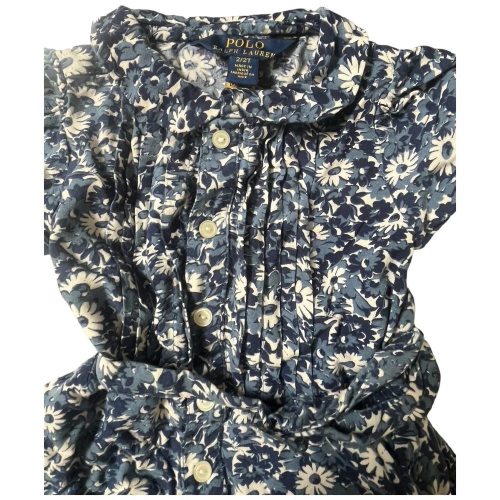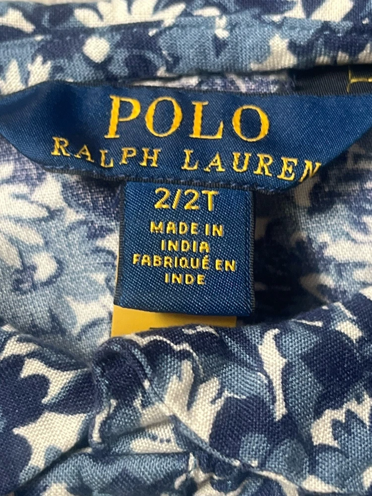 Polo Ralph Lauren Little GIrls Toddler Navy Floral Dress Short Sleeve Viscose 2T Measures about 19" long by 10-1/2" armpit to armpit Pre-owned, good condition Item location: Back warehouse, Left, 5th Bay, 2nd Shelf, B3