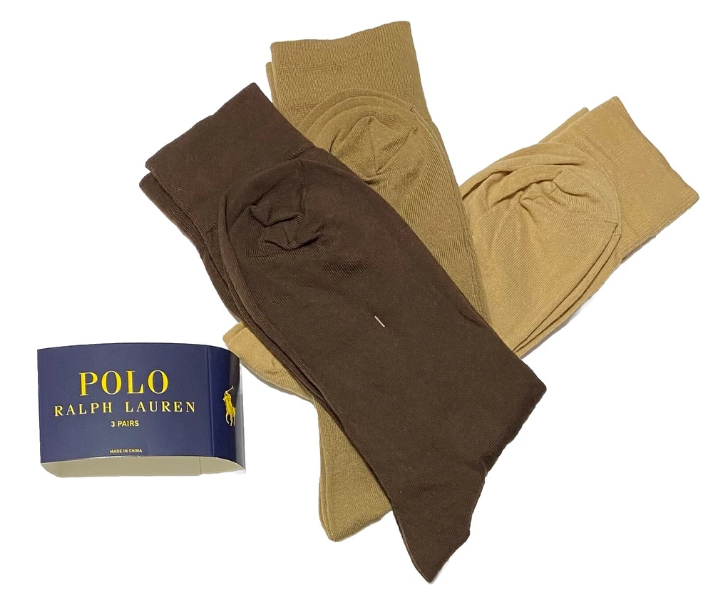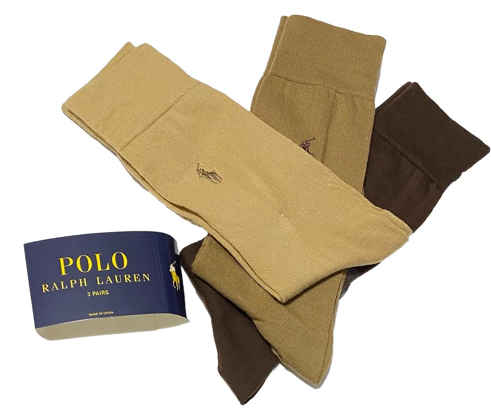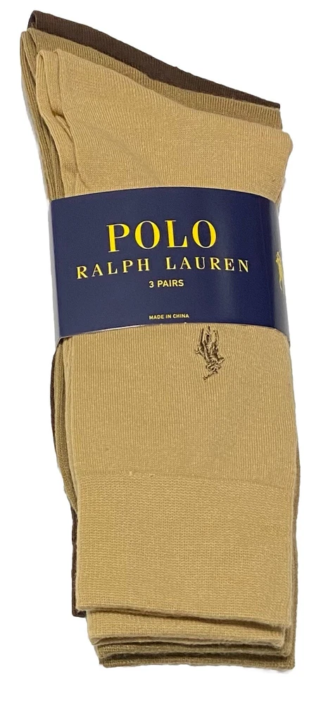Polo Ralph Lauren Men's 3-Pair Dress Socks 70% Polyester 29% Nylon 1% Spandex Beige/Tan/Brown All with Polo Pony Logo Sock Size: 10-13 Fits Shoe Size: 6-12.5