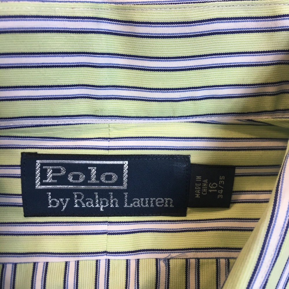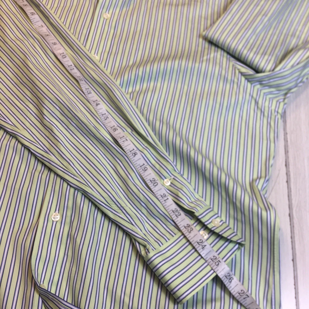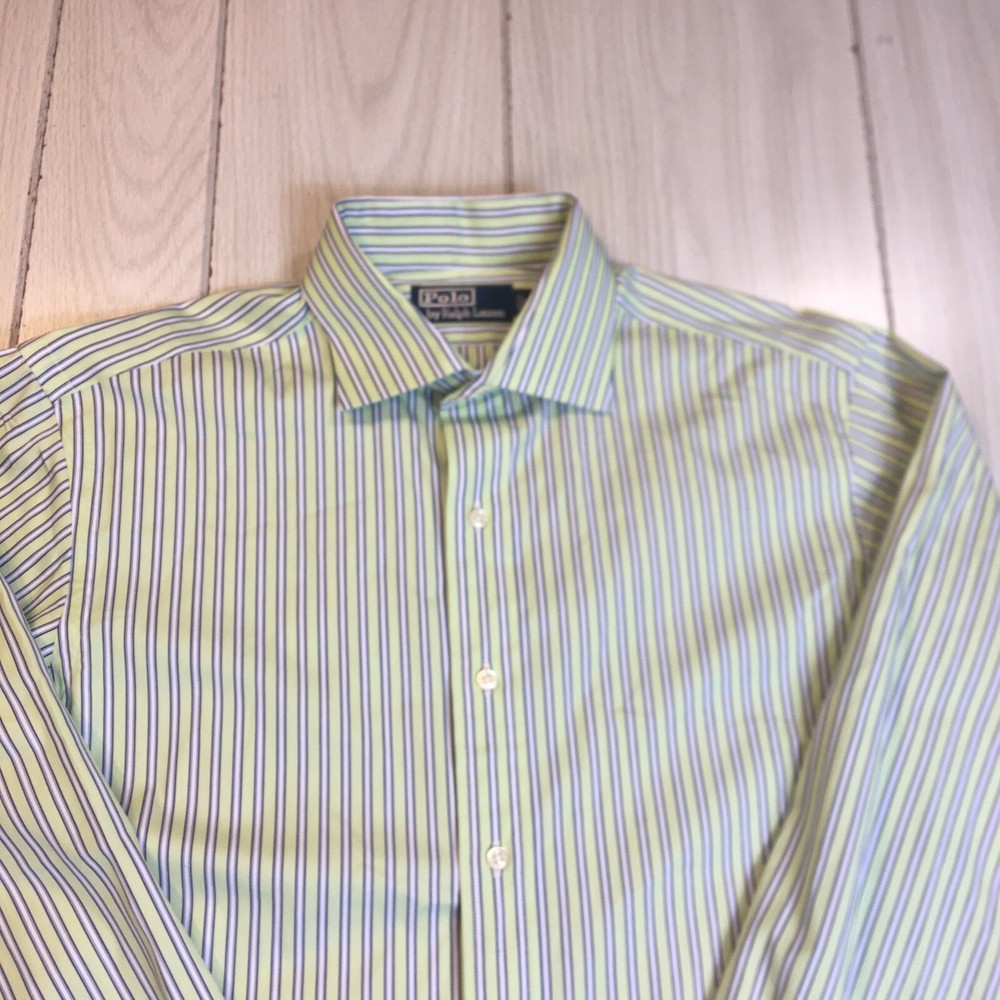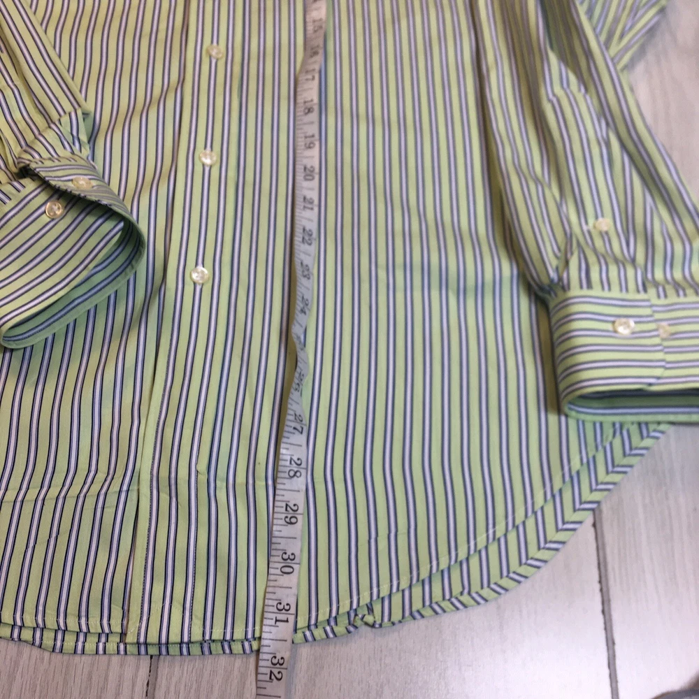 Polo Ralph Lauren Button Front Shirt Men's Striped Green 100% Cotton 16 34/35 34#580