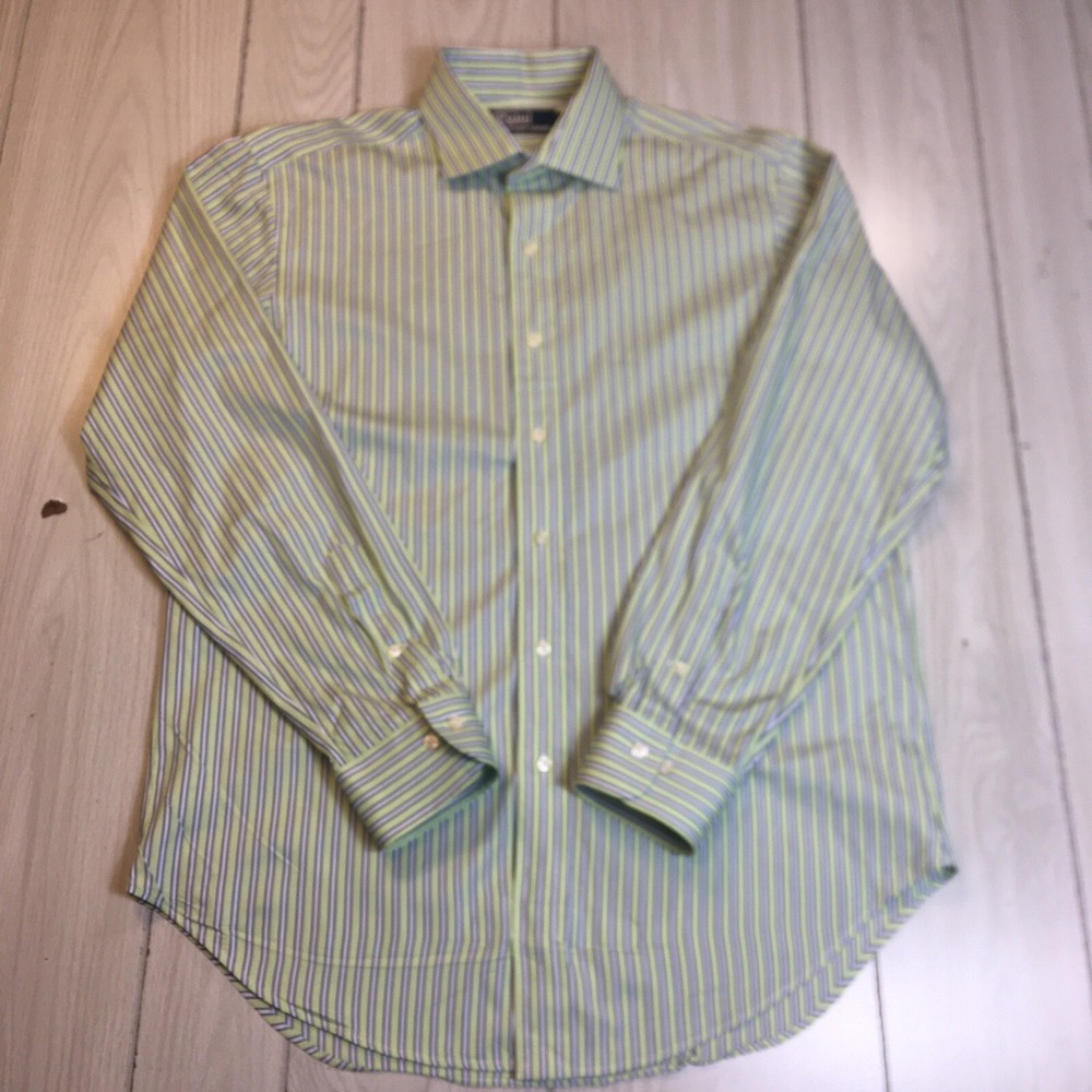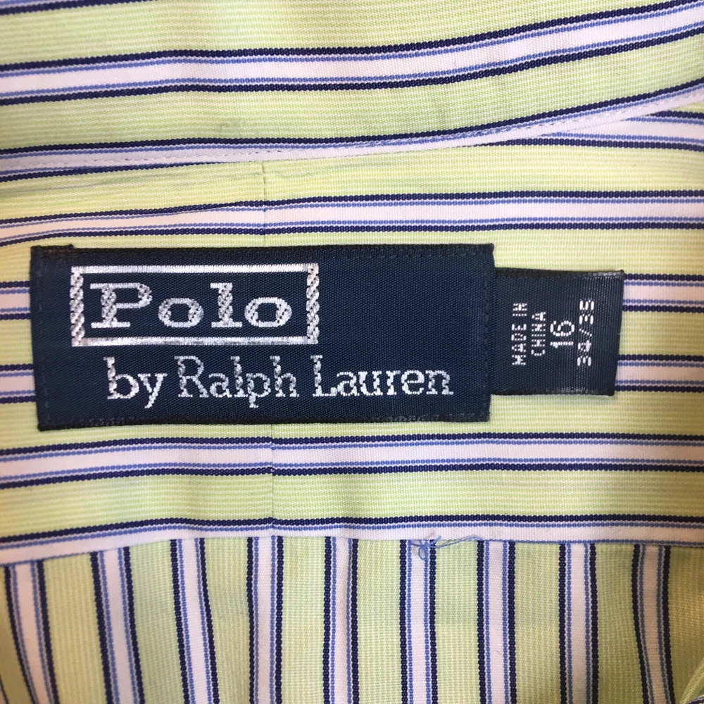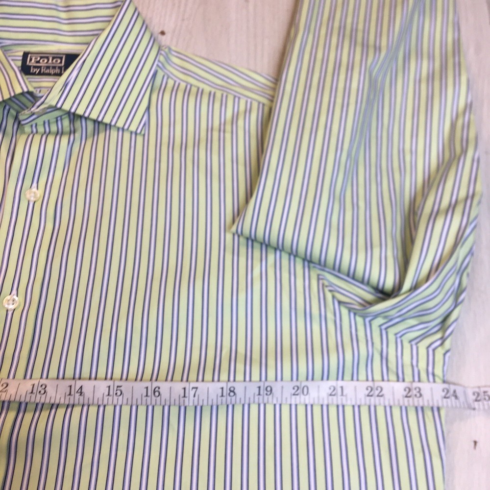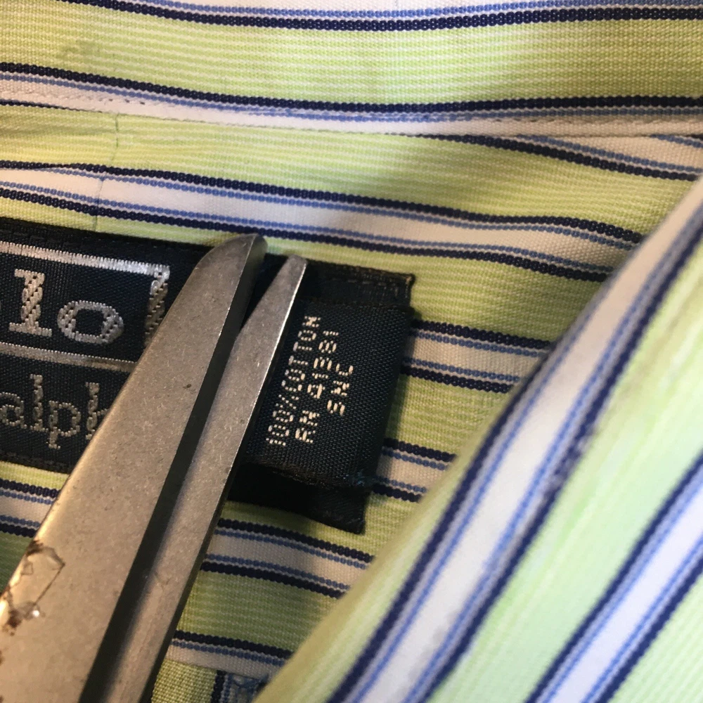 Polo Ralph Lauren Button Front Shirt Men's Striped Green 100% Cotton 16 34/35 34#580