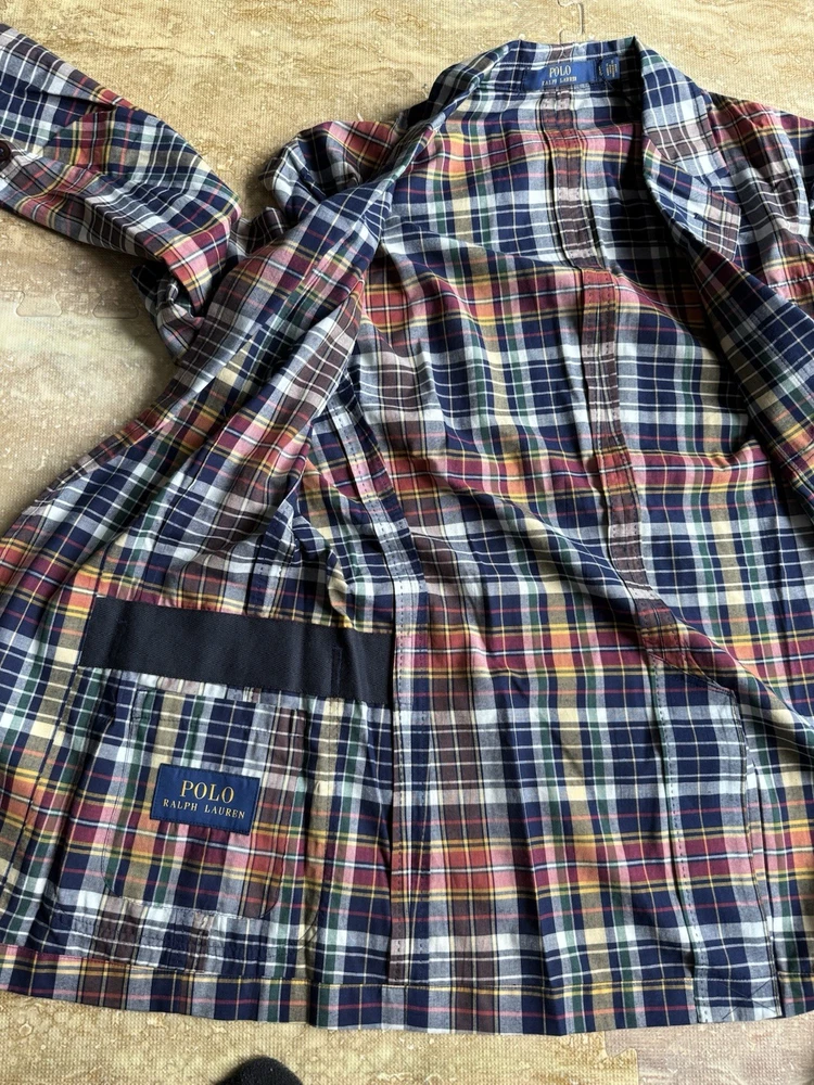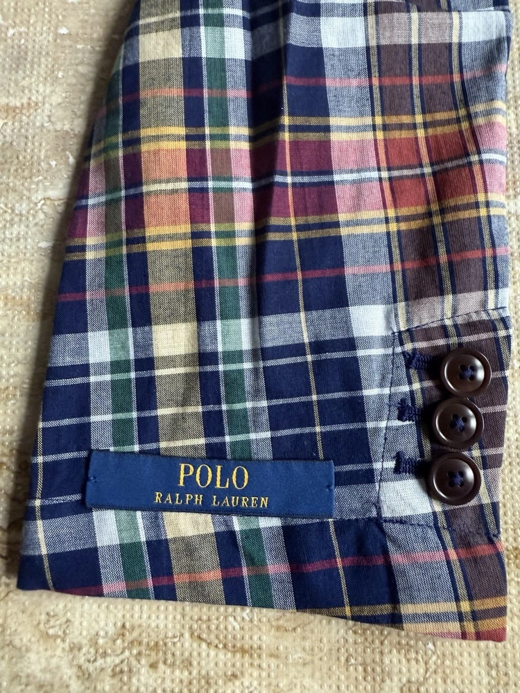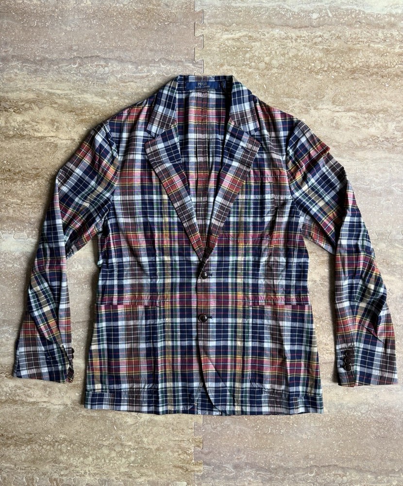 Polo Ralph Lauren Mens Large Plaid Sport Coat Tartan Blazer Madras Suit Jacket