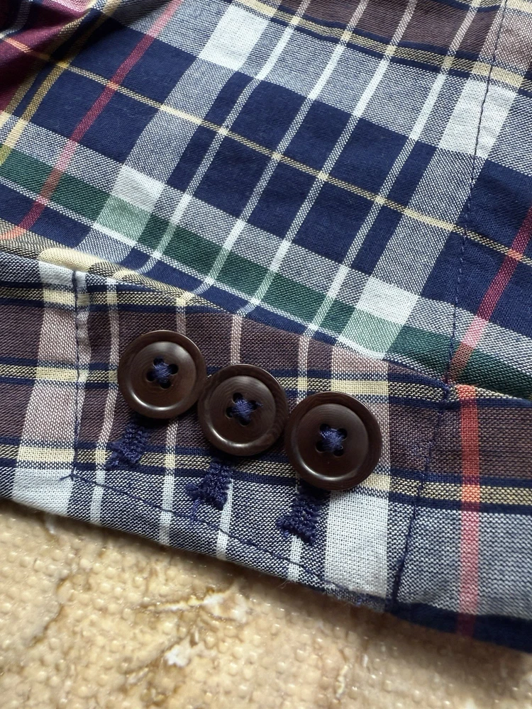 Soft Knit Featherweight Unconstructed Gentlemen Elevate your style with this classic Polo Ralph Lauren men's blazer in a large plaid pattern. The sport coat is made of soft, machine-washable knit cotton with a cotton lining for added comfort. It features a notch lapel style, single-breasted front with three buttons, and single-vented back. The jacket is in excellent condition and is perfect for any occasion, from business meetings to weddings. The blazer is a regular fit and is true to size.