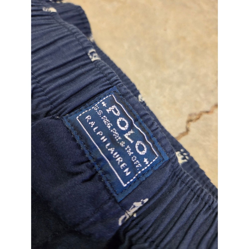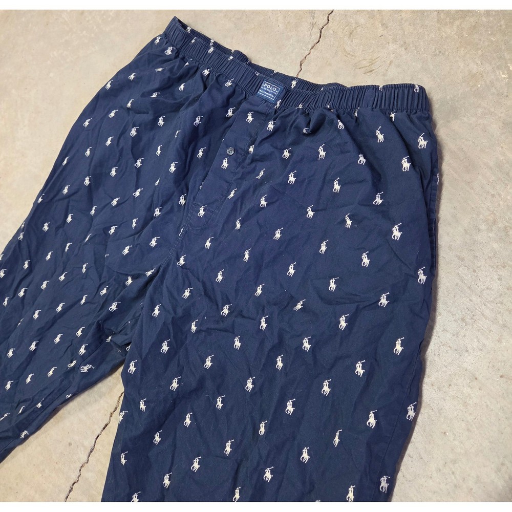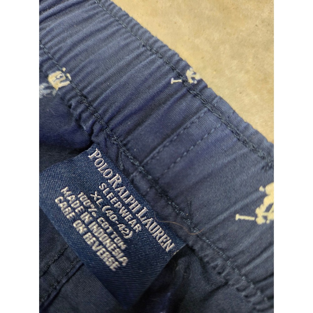 Accents: Logo Fabric Type: Canvas Material: Cotton Blend Features: Lightweight Department: Men Garment Care: Machine Washable Season: Fall, Spring, Summer, Winter Type: Pajama Pants Closure: Button Color: Blue Pattern: Graphic Print Brand: Polo Ralph Lauren Size: L Size Type: Regular