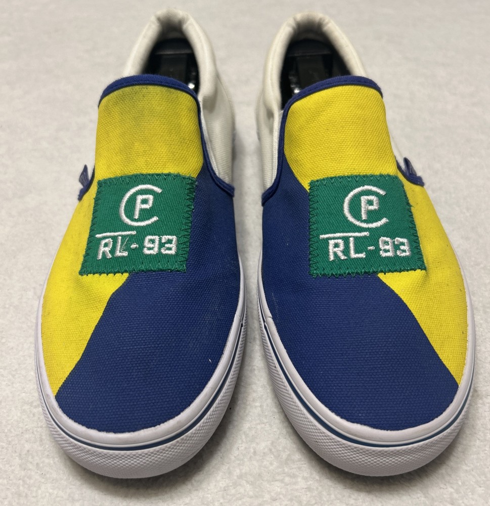 Polo Ralph Lauren Mens Shoes Size 6.5 Yellow Blue White Slip On Sneakers Pony RL