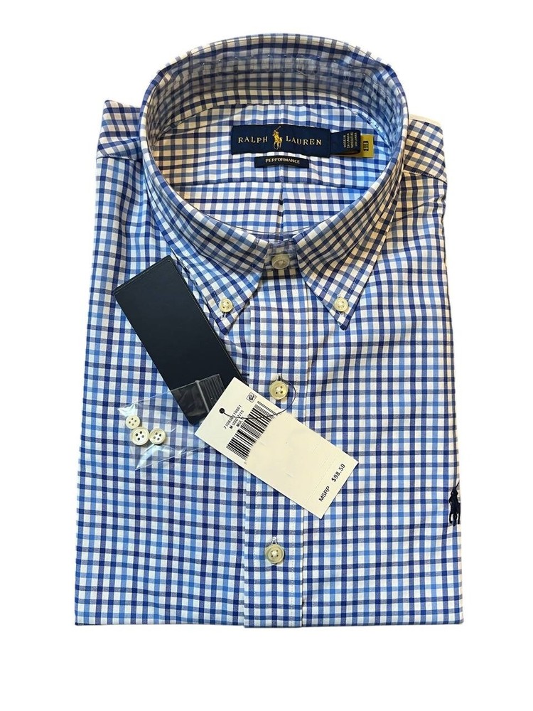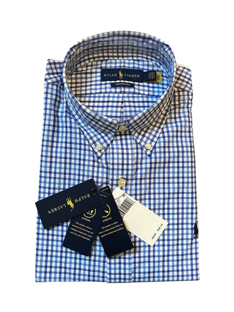 Features: Stretch Season: Fall, Spring, Summer, Winter Material: Nylon, Spandex Collar Style: Button-Down Garment Care: Machine Washable Product Line: Ralph Lauren Performance Color: Blue Fit: Regular Occasion: Casual Department: Men Sleeve Length: Long Sleeve Size Type: Regular Closure: Button Neckline: Collared Size: 3XL Brand: Polo Ralph Lauren Model: Ralph Lauren Polo Performance Wicking Pattern: Plaid Type: Polo