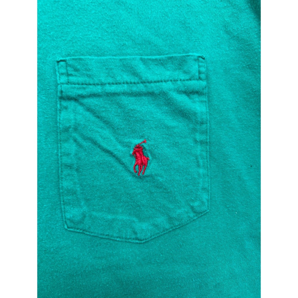 Polo Ralph Lauren pocket t-shirt in a vibrant emerald green features the iconic red pony logo embroidered on the single chest pocket. Crafted from soft 100% cotton and made in the USA, this vintage-inspired staple offers a classic crew neck and short sleeves for a timeless, relaxed fit. Brand: Polo Ralph Lauren Style: Pocket T-Shirt Color: Emerald Green Material: 100% Cotton Pattern: Solid Sleeve Length: Short Sleeve Neckline: Crew Neck Fit: Classic Features: Chest Pocket, Embroidered Logo Origin: Made in USA Keywords: Vintage, 90s, Retro, Preppy, Streetwear, Minimalist, Basic, Essential, Gorpcore, Sporty, Casual, Ivy League, Old Money, Sustainable