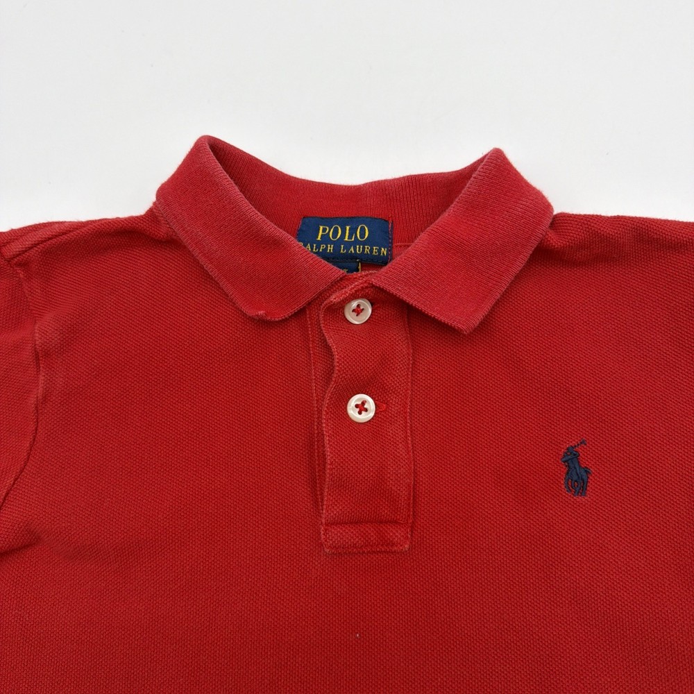 This Polo Ralph Lauren Polo Shirt in red is perfect for toddler boys in size 4T. Made from 100% cotton, it features a classic fit with short sleeves, a collared neckline, and button closure. The shirt is adorned with the signature Polo Ralph Lauren logo and is suitable for various occasions including travel, parties, casual wear, formal events, and christenings. With a pullover style and all-season versatility, this shirt is ideal for active little boys who love to walk, attend school, or enjoy golf. Check pictures for flaws and measurements