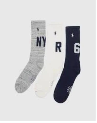 Material: 77% cotton, 21% polyester, 2% spandex Size Type: Regular Style: Crew Socks Color: Multicolor Type: Socks Size: 10-13 Department: Men Brand: Polo Ralph Lauren Sock Length: Over the Calf Number in Pack: 3 Pairs