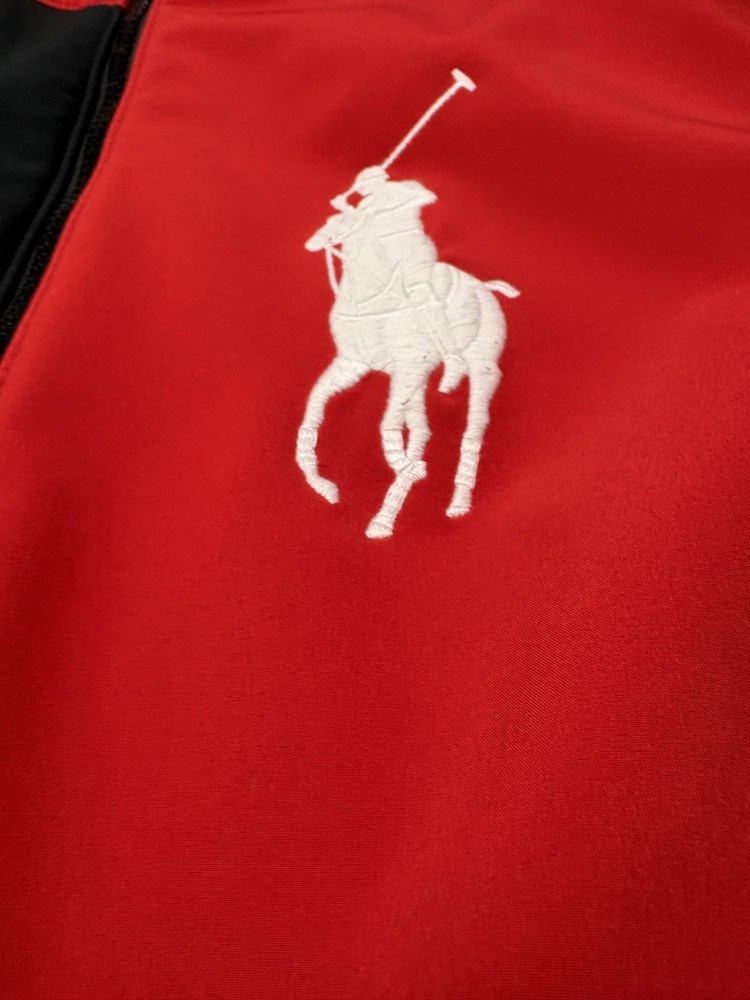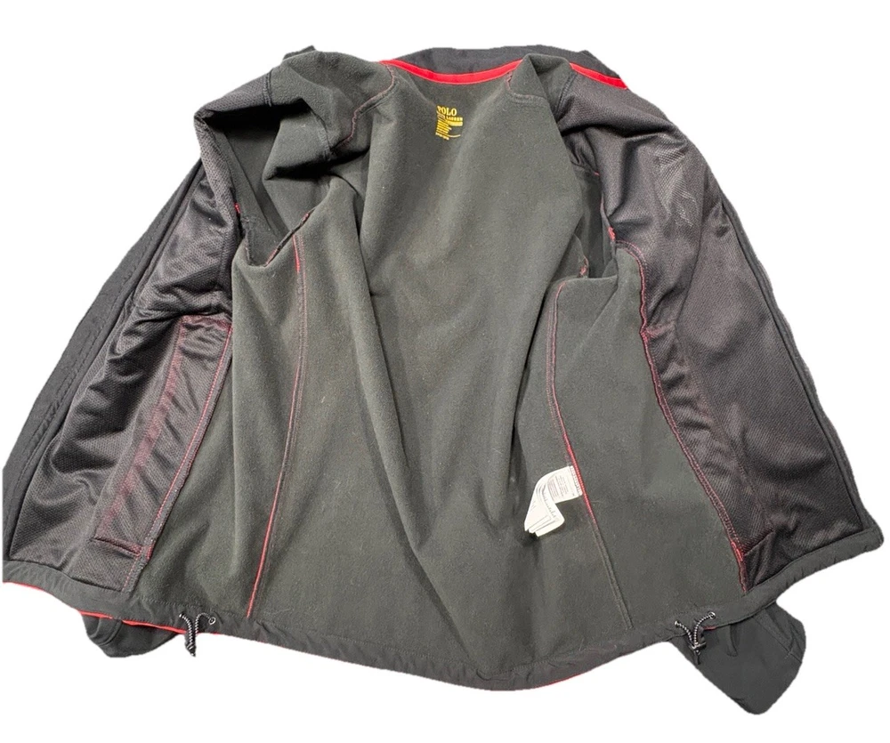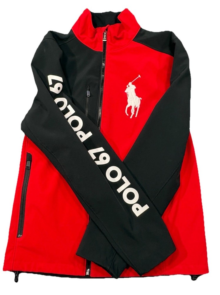 The Polo Ralph Lauren RL 67 Jacket in size small is a stylish and versatile outdoor windbreaker designed for men. Made of polyester with a full zip closure, this jacket features the iconic Polo Ralph Lauren logo embroidery on the red and black design. Perfect for travel and casual occasions, it has a mid-length fit and is machine washable for easy care. Ideal for winter, fall, and spring seasons, this jacket combines classic style with practical features, making it a must-have addition to any wardrobe.