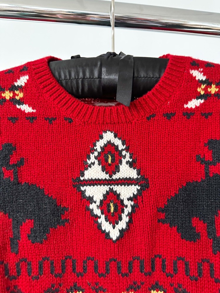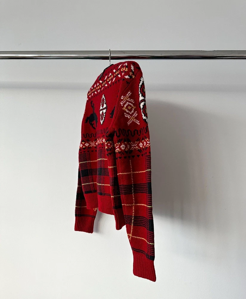 Indulge in comfort and style with Polo Ralph Lauren's Red Tartan Fair Isle Intarsia Crewneck Wool Blend Jumper. Showcasing a classic tartan and Fair Isle design, this jumper features a crewneck and is made from a cozy wool blend for ultimate warmth. Upgrade your winter wardrobe with this festive piece. Details: Red wool blend knitted construction fair isle intarsia knit Tartan detail check pattern crew neck long sleeves ribbed cuffs and hem straight hem Composition 98% Wool, 2% Other fibres Washing instructions Hand Wash
