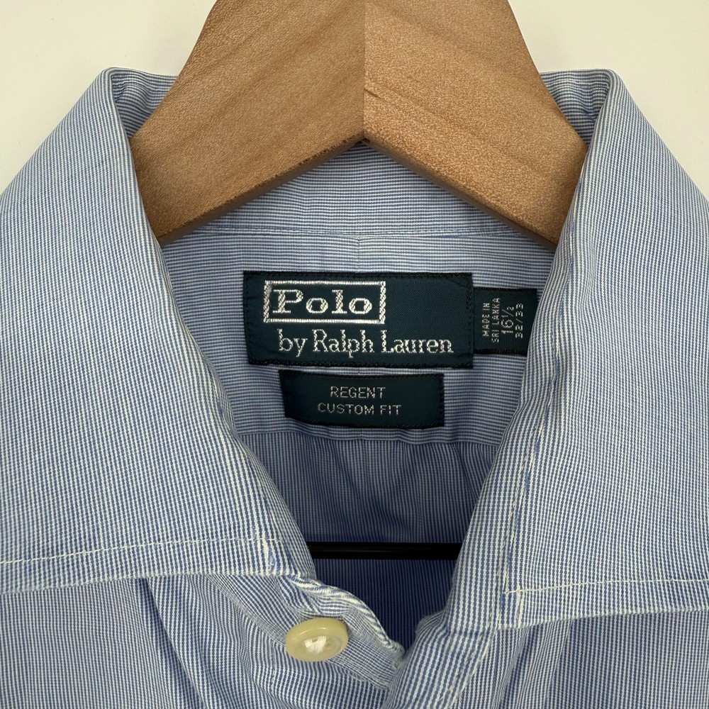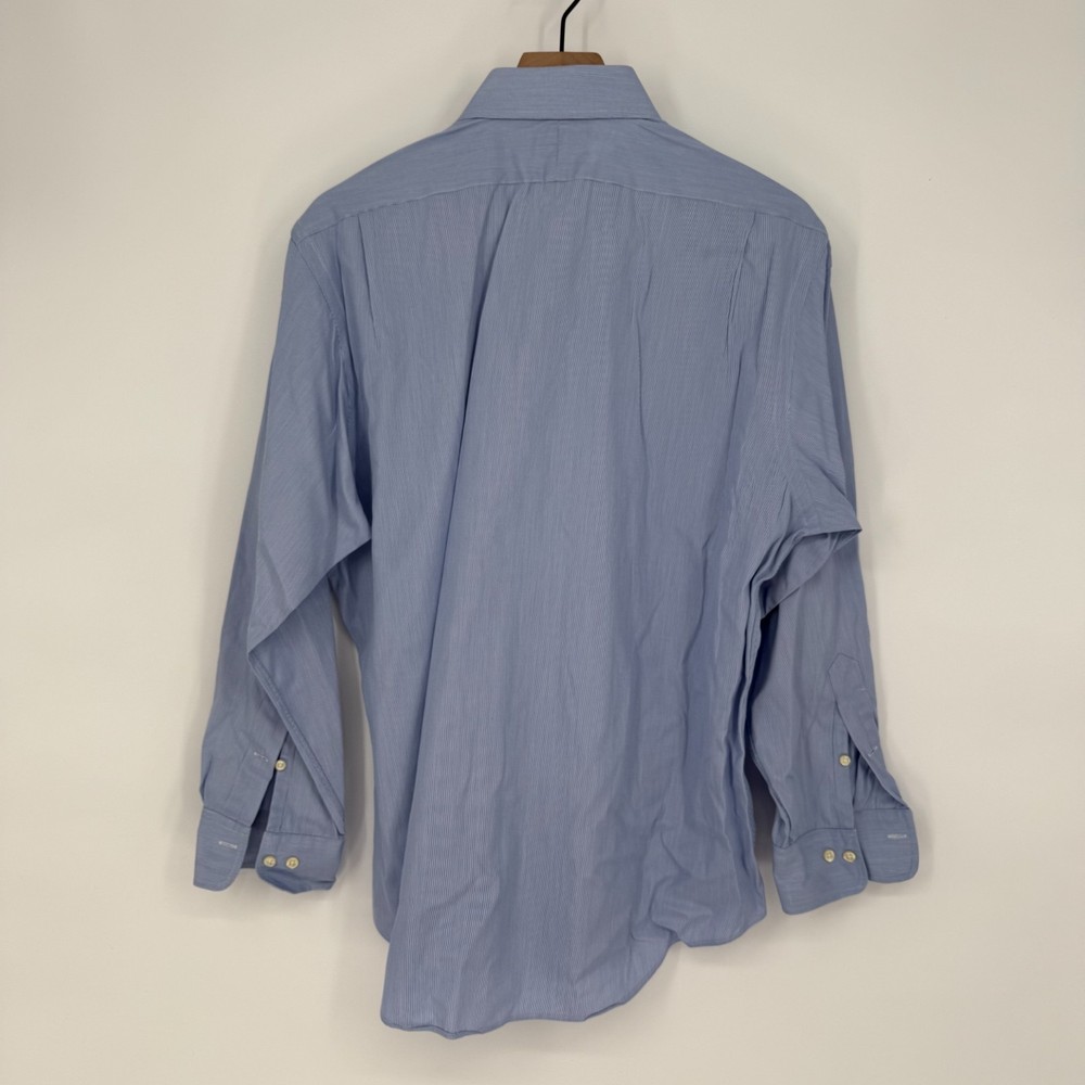 Pre-owned Excellent Condition Color Blue White Size 16.5 Custom Fit, Business, Pleated, Button Up, Long Sleeve, Striped Custom Fit Chest 24" Length 30"