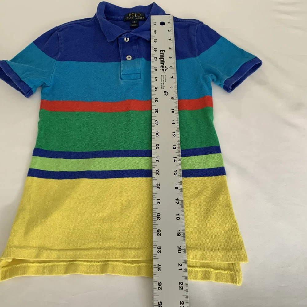 - Polo Ralph Lauren Polo Shirt Boys Small Size 8 Multicolor Stripe: Blue Green Red Yellow Stripe Short Sleeve Cotton Gently used preowned condition. See photos for proper expectation of condition. Please see photos for measurements FAST Shipping! 1-3 business days. Tags: everyday versatile comfortable easy to wear classy casual favorite y2k 80s 90s 013251 preppy academia academic tennis polo golf yacht nautical college playful flirt aesthetic wardrobe outfit elite fashion designer old money kids big toddler infant newborn boys happy durable daycare school playdate adorable cute preppy colorful organic fun playful childrenswear childsplay toys sustainable outdoor play colorful