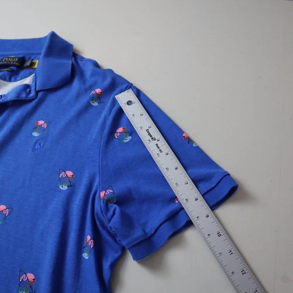 Polo Ralph Lauren Shirt Mens XL Blue Polo Flamingo Fishing Preppy Tropical Beach Sizing in the title and item specifics are based on what the tag says. Measurements can be seen in the photos.