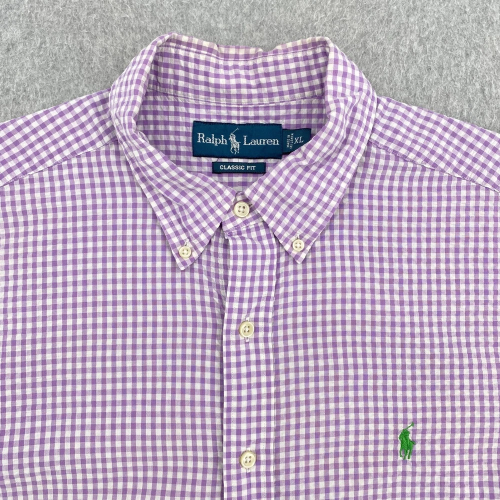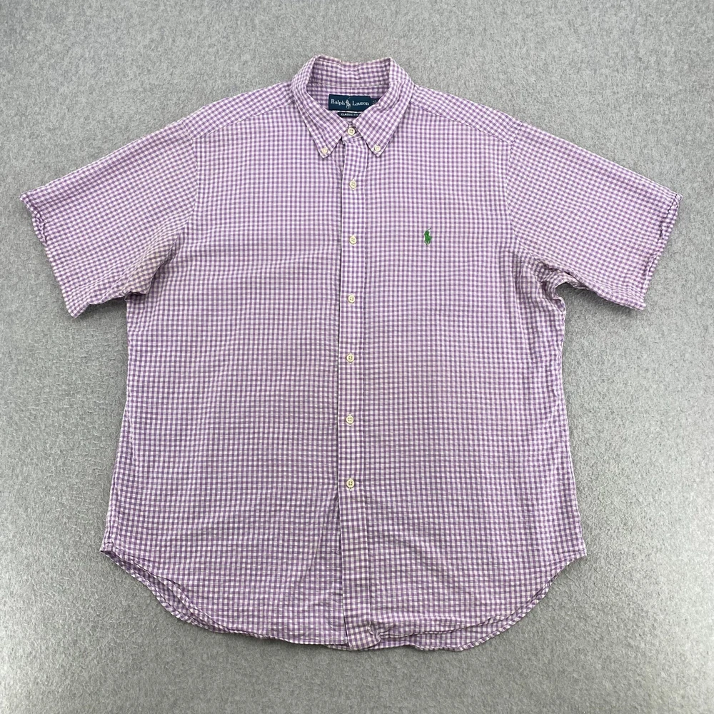 Polo Ralph Lauren Shirt Mens XL Purple Check Seersucker Short Sleeve Classic Fit Item: The photos provided depict the actual item you will receive. Any defects or spots will be clearly shown in the photos. Shipping: We offer fast and reliable shipping! All orders will be provided with a tracking number to ensure that your item arrives promptly. Return Policy: 30-day hassle-free returns. See our return policies for details. Feel free to reach out to us through eBay with any questions!