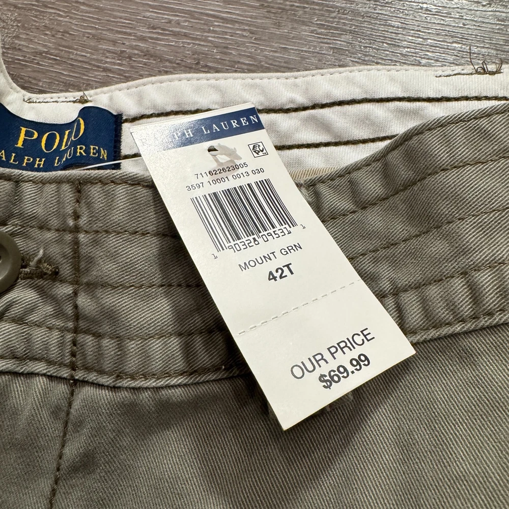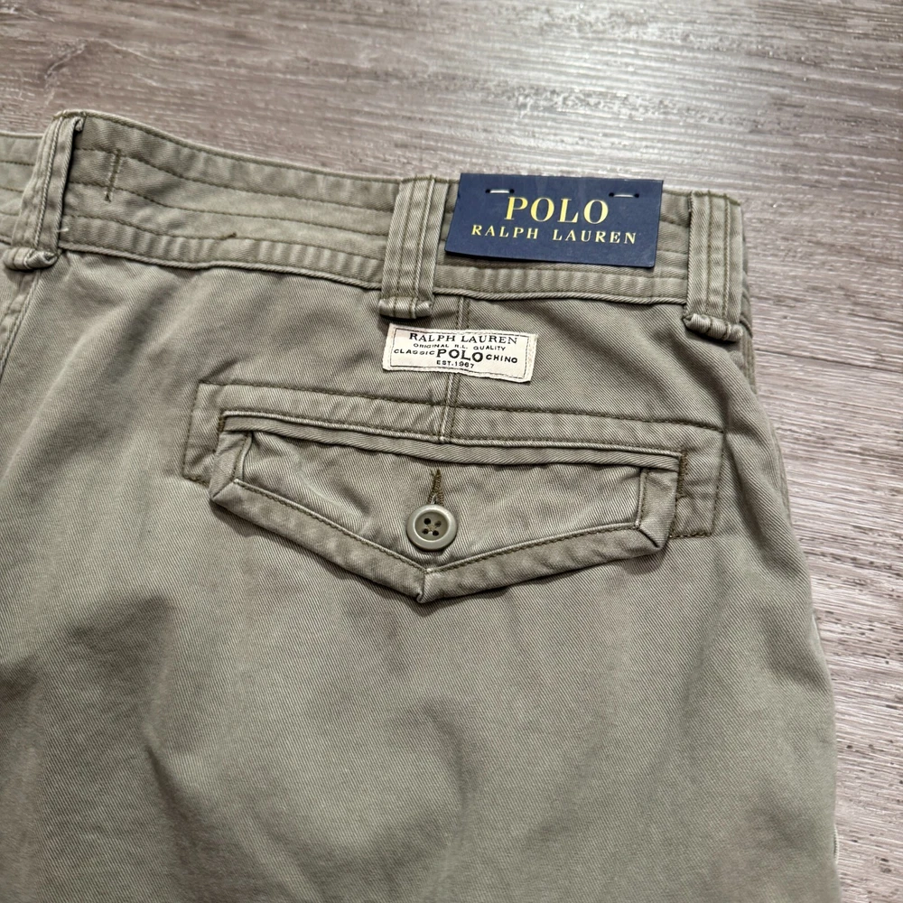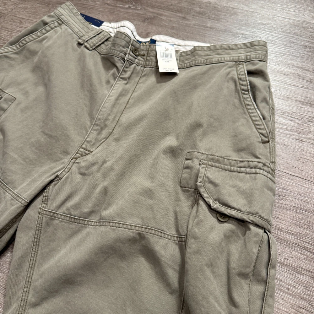 Vintage: No Fabric Wash: Medium Pattern: Solid Occasion: Casual, Travel Accents: Logo Theme: Outdoor Color: Gray Pocket Type: Cargo Pocket Waist Size: 42 in Garment Care: Machine Washable Rise: Mid (10-12 in) Fabric Type: Knit Size Type: Regular Size: 42 Brand: Polo Ralph Lauren Department: Men Features: Easy Care, Lightweight, Pockets Style: Cargo Inseam: 12 in Front Type: Pleated Season: Fall, Spring, Summer Fit: Regular Personalize: No Handmade: No Closure: Button Material: Cotton