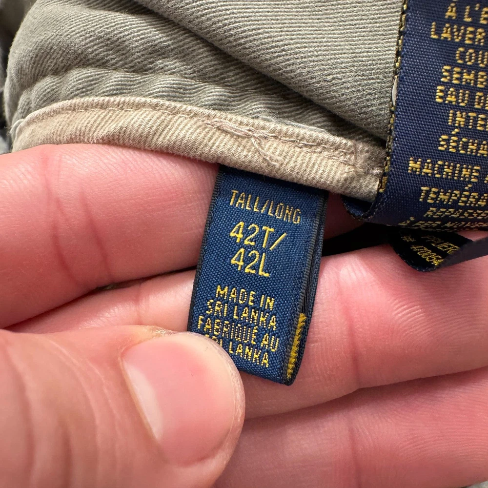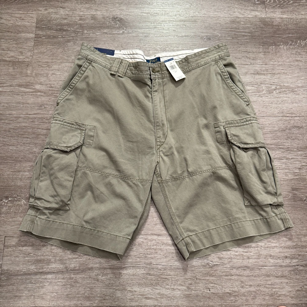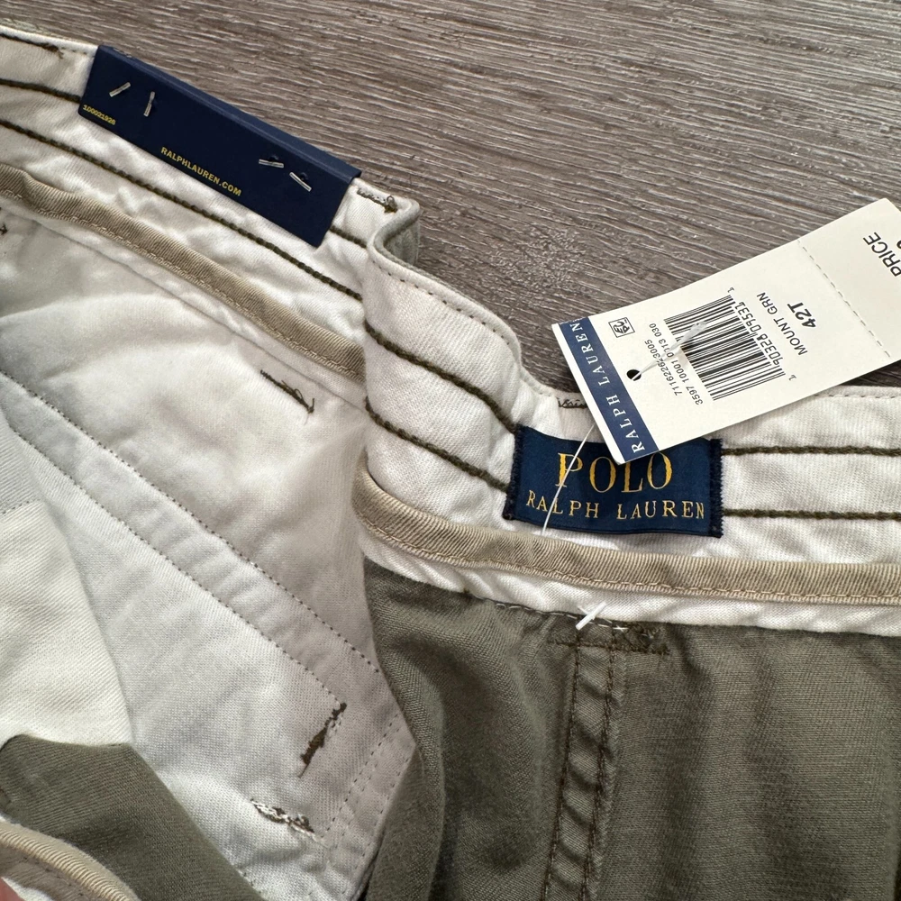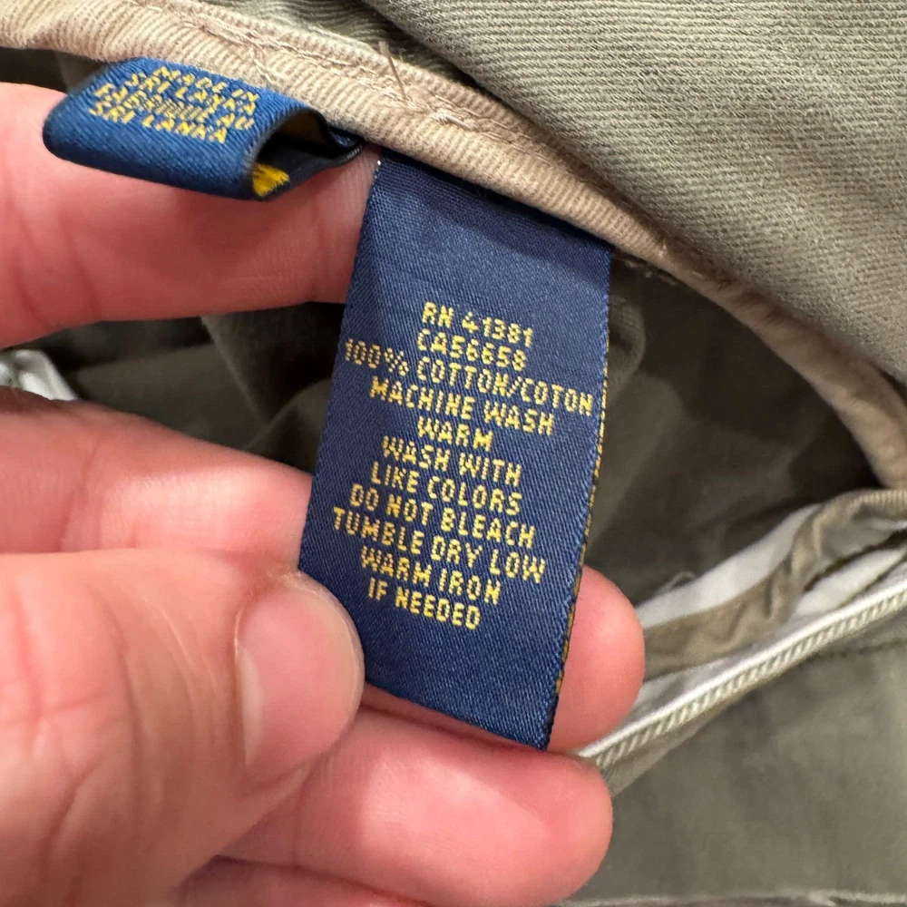 Vintage: No Fabric Wash: Medium Pattern: Solid Occasion: Casual, Travel Accents: Logo Theme: Outdoor Color: Gray Pocket Type: Cargo Pocket Waist Size: 42 in Garment Care: Machine Washable Rise: Mid (10-12 in) Fabric Type: Knit Size Type: Regular Size: 42 Brand: Polo Ralph Lauren Department: Men Features: Easy Care, Lightweight, Pockets Style: Cargo Inseam: 12 in Front Type: Pleated Season: Fall, Spring, Summer Fit: Regular Personalize: No Handmade: No Closure: Button Material: Cotton