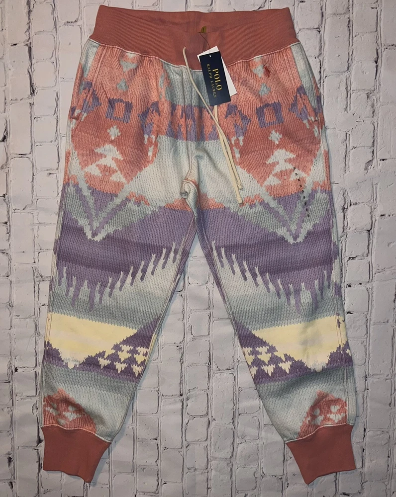 A6 Revitalize your athleisure wardrobe with the Polo Ralph Lauren Southwestern Rose Serape Printed Ankle Athletic Jogger Pants. These jogger pants make a bold statement, adding a pop of personality to your casual look. The Southwestern Rose pattern is a nod to heritage aesthetics, bringing a unique and trendy twist to your everyday wear. Crafted with a focus on both form and function, these joggers offer a relaxed fit. The ankle-length design adds a modern touch, making these pants versatile for workouts, errands, or lounging in style. Joggers provide a soft and breathable feel against your skin. The elastic waistband ensures a secure fit, while the drawstring allows you to customize your comfort level. Whether you're hitting the gym, going for a jog, or simply running errands, the Polo Ralph Lauren Southwestern Rose Serape Jogger Pants are designed to keep up with your active lifestyle.