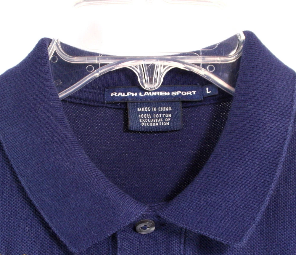 Sleeve Length: Short Sleeve Style: Pullover Collar Style: Spread Vintage: No Color: Navy Blue Brand: Polo Ralph Lauren Pattern: Solid Closure: 2 Button Placket Theme: Classic, Designer Department: Boys Neckline: Collared Fabric Wash: Dark Fabric Type: 100% Cotton Garment Care: Machine Washable Type: Polo Features: All Seasons, Easy Care, Lightweight Performance/Activity: Casual Accents: Embroidered Country/Region of Manufacture: China Character: None Fit: Classic Occasion: Casual Size: L Season: Fall, Spring, Summer Material: 100% Cotton Seller Notes: “In excellent condition. May have been worn once or twice.” Product Line: Ralph Lauren Sport
