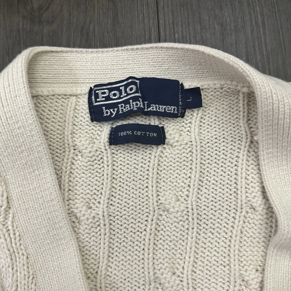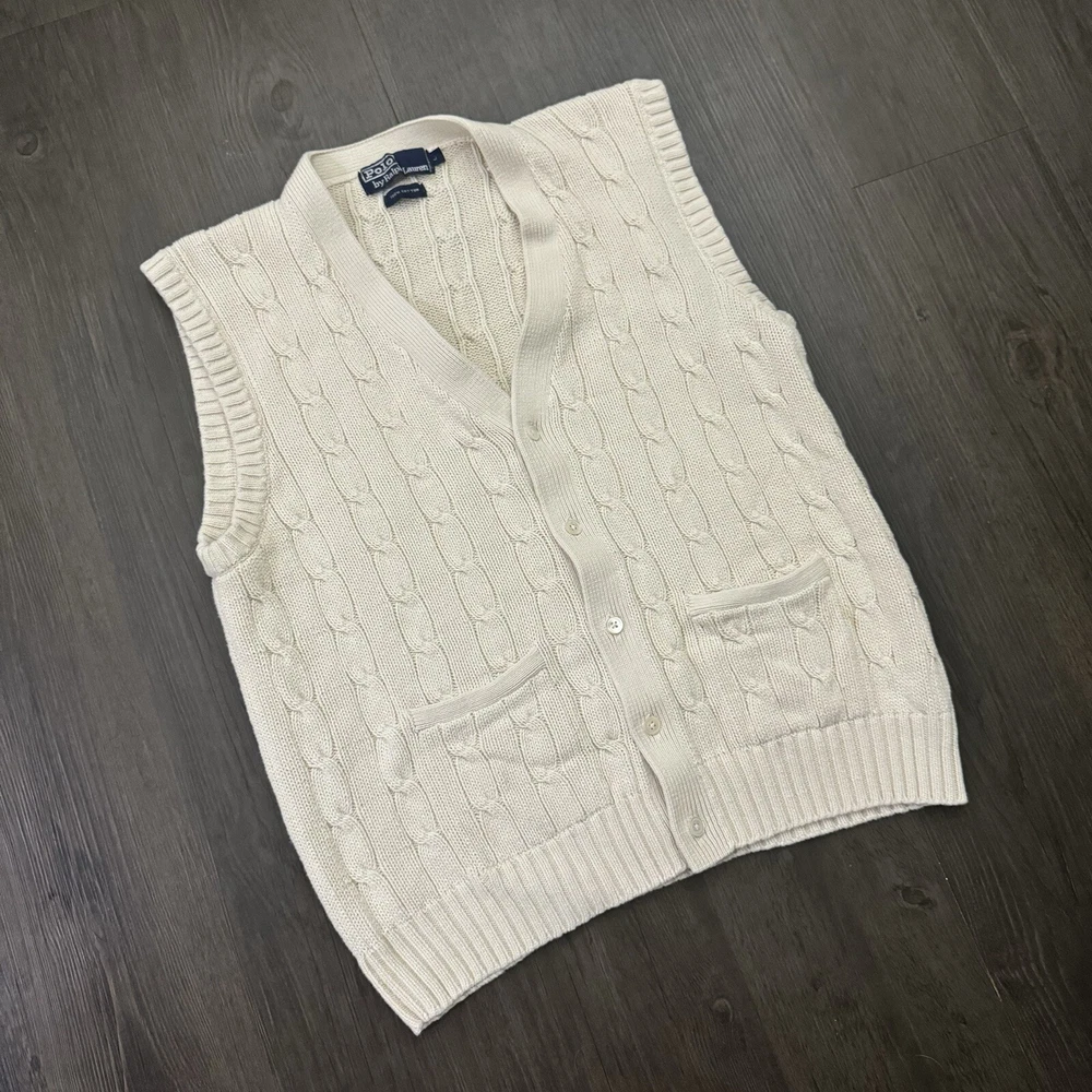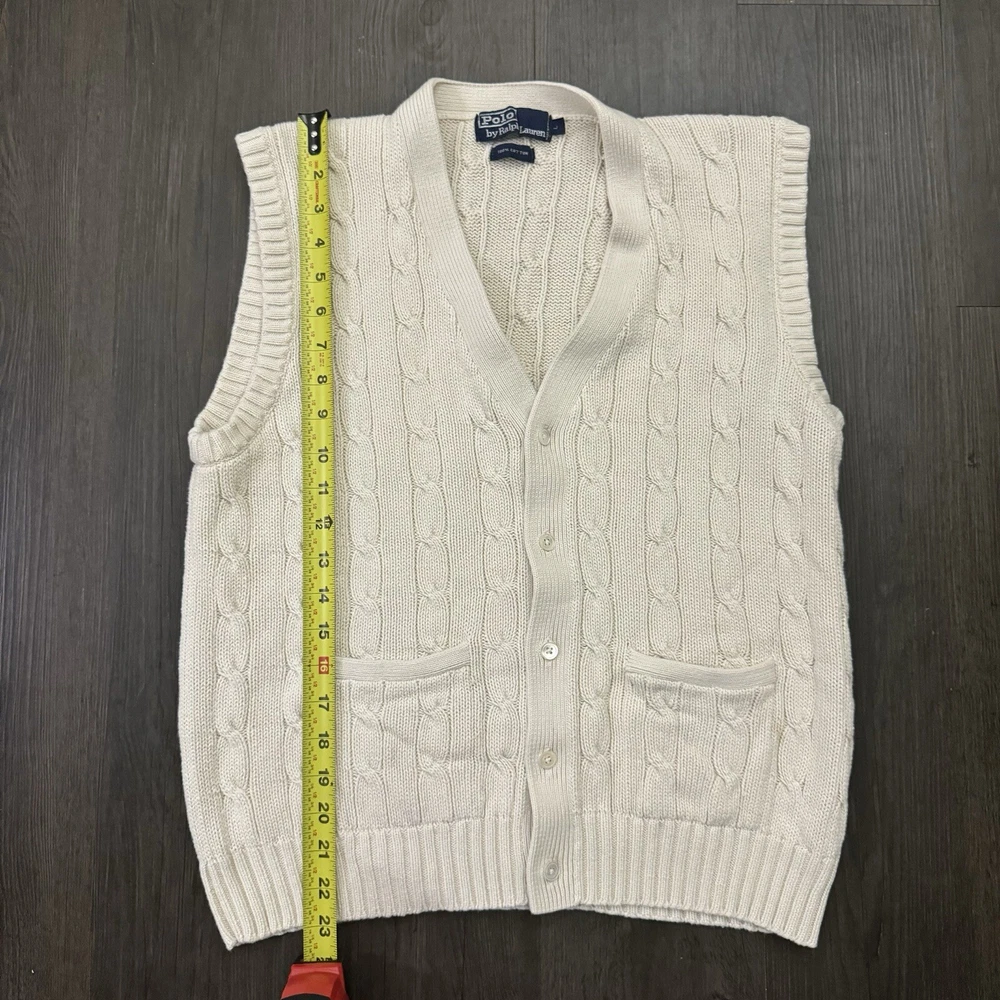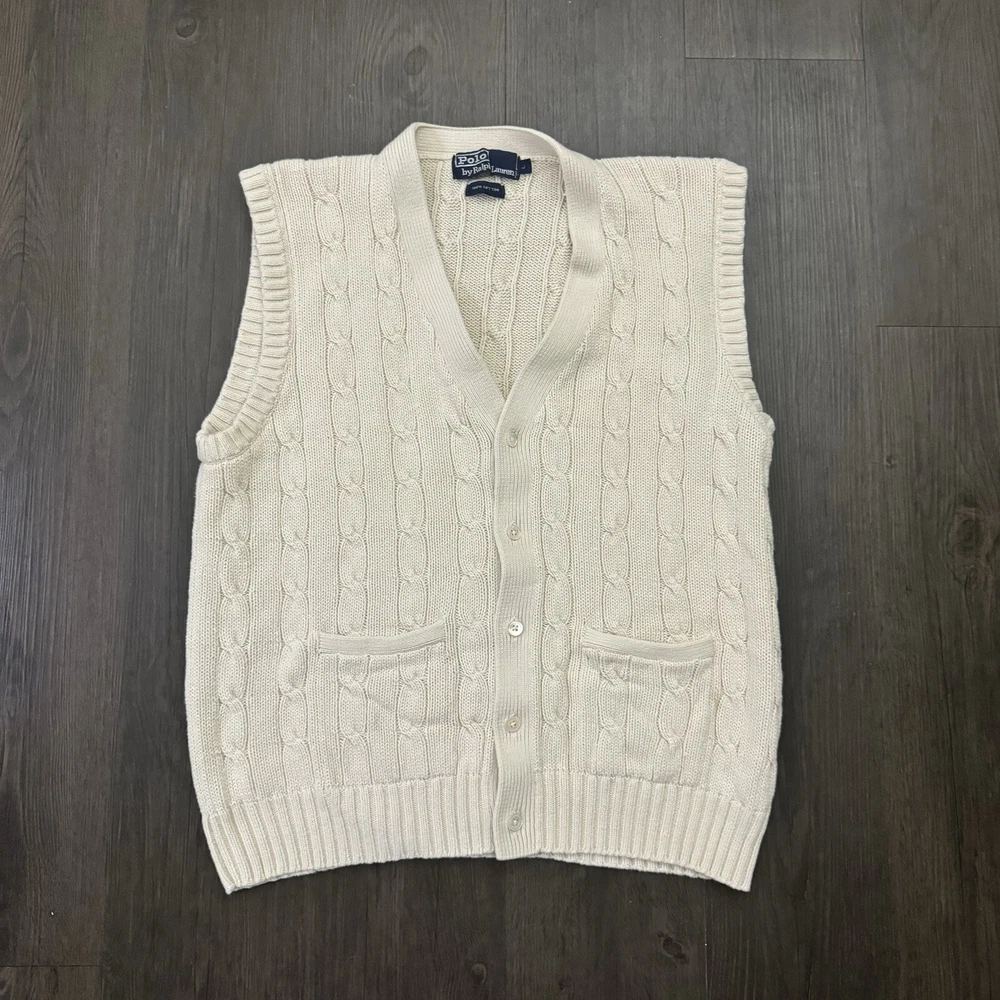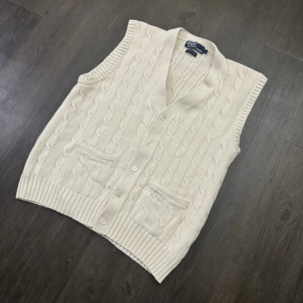 HomePolo Ralph Lauren Sweater Vest Button Up Cream Adult Size L Cable Knit