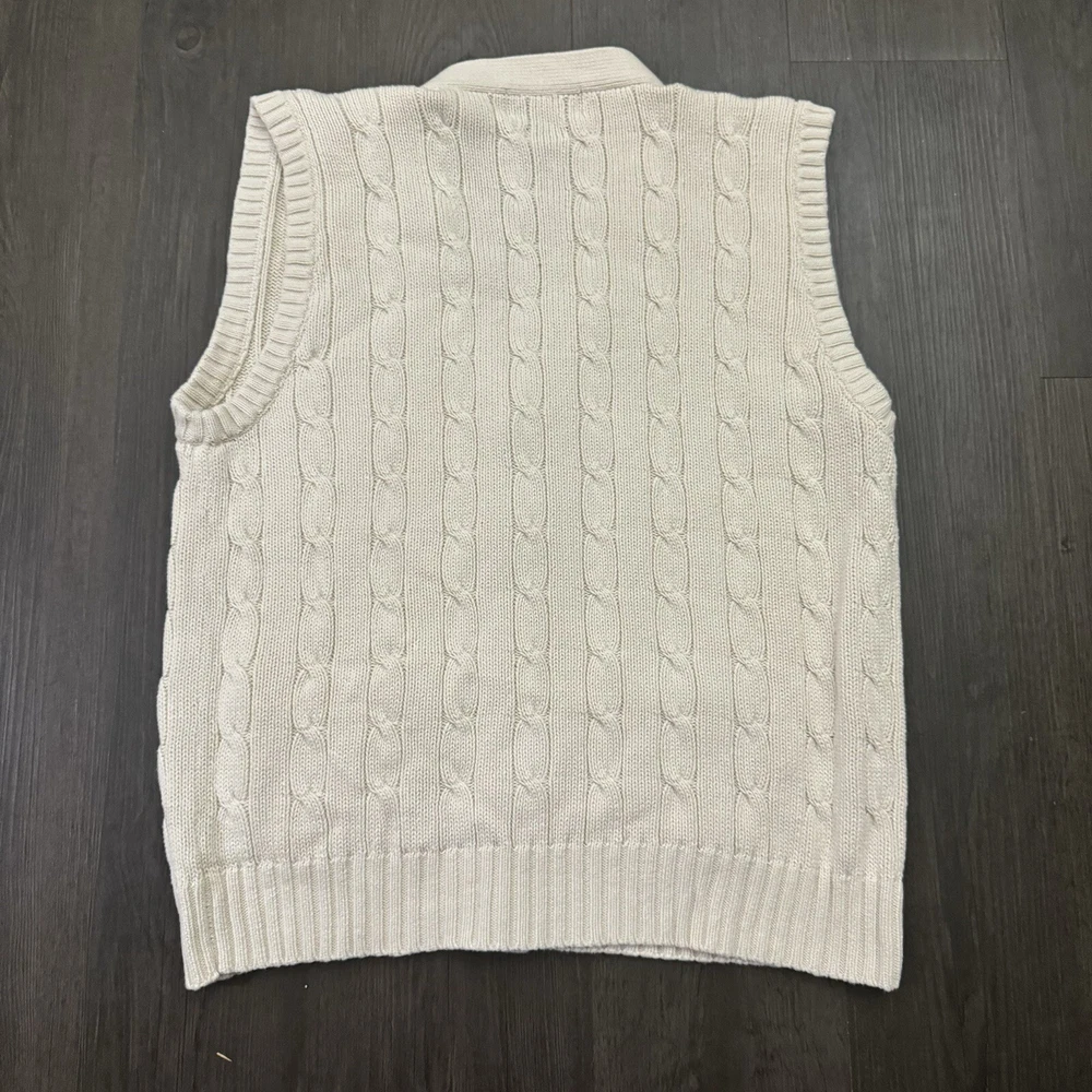 Polo Ralph Lauren Sweater Vest Button Up Cream Adult Size L Cable Knit