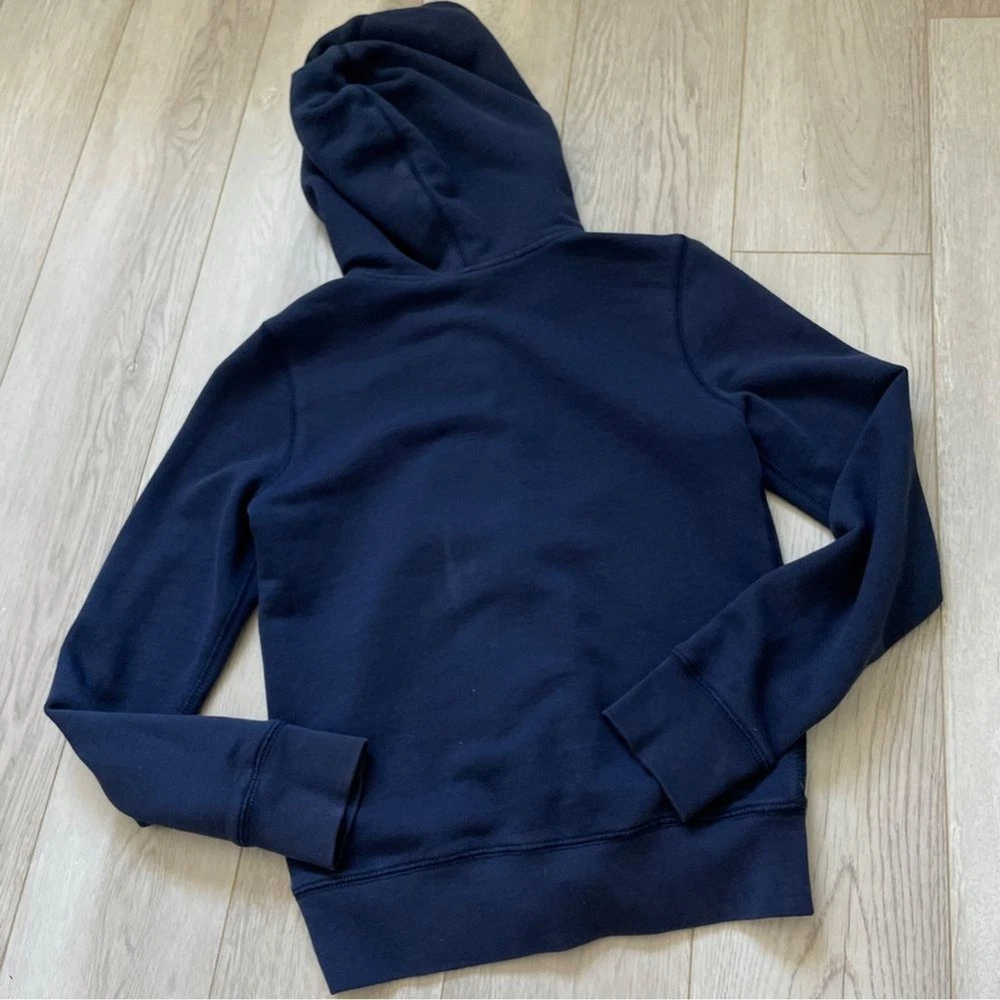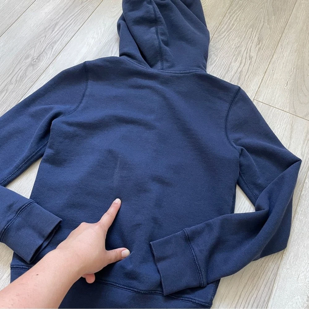 Polo Ralph Lauren Terry Full Zip Hoodie Jacket in the color Blue. Hooded. Terry interior. Super soft and comfy. Full zip. Long sleeve. In pre-loved condition, one stain in back. Kids Size 8-10. Cotton / Polyester.