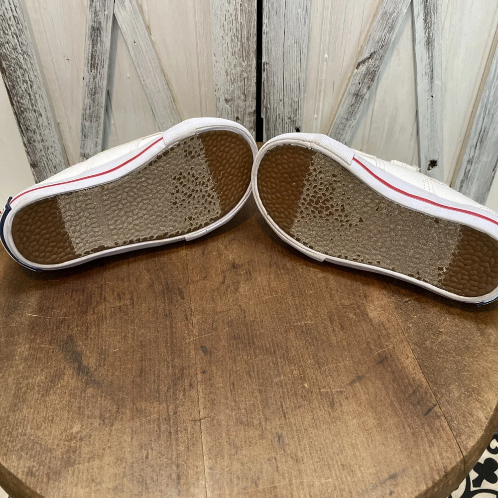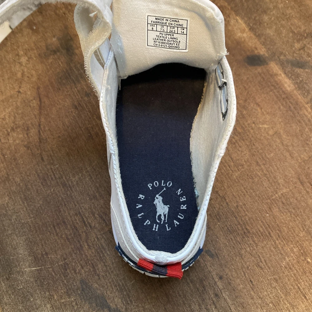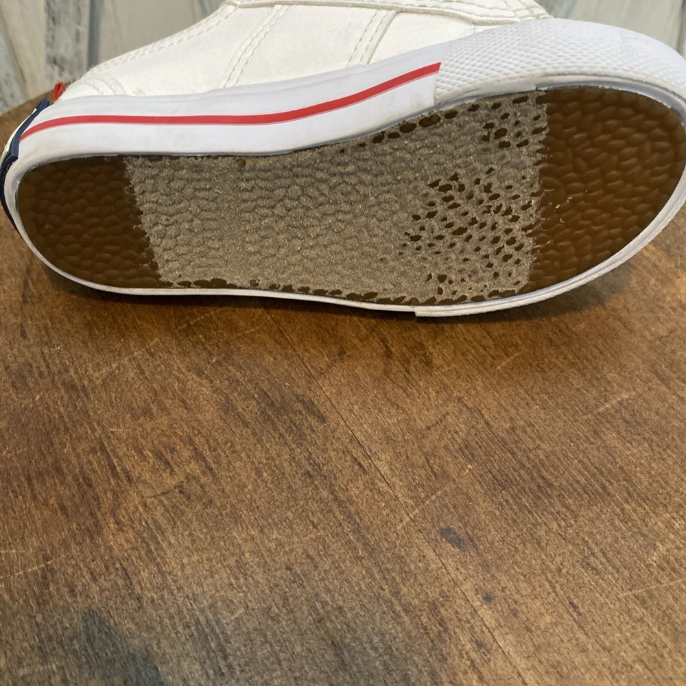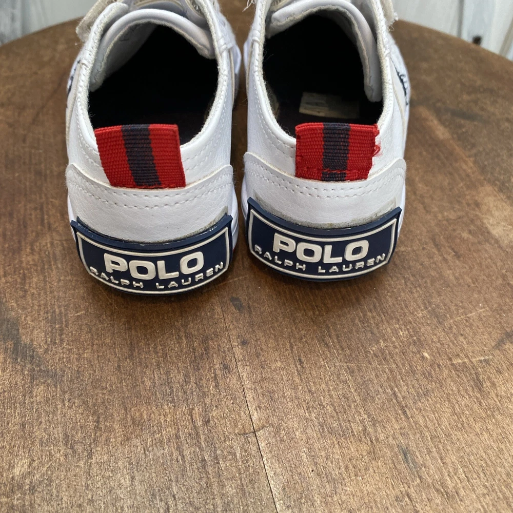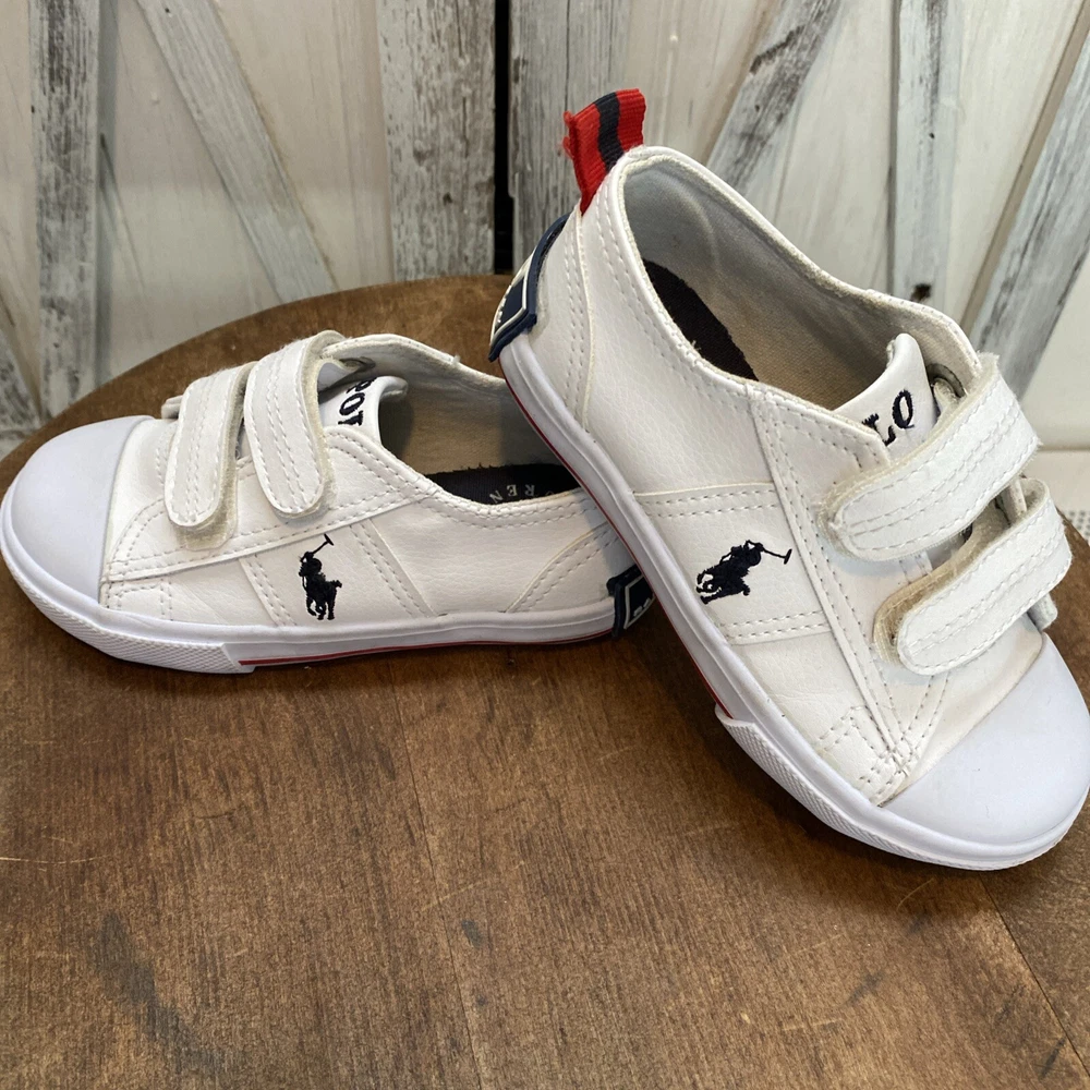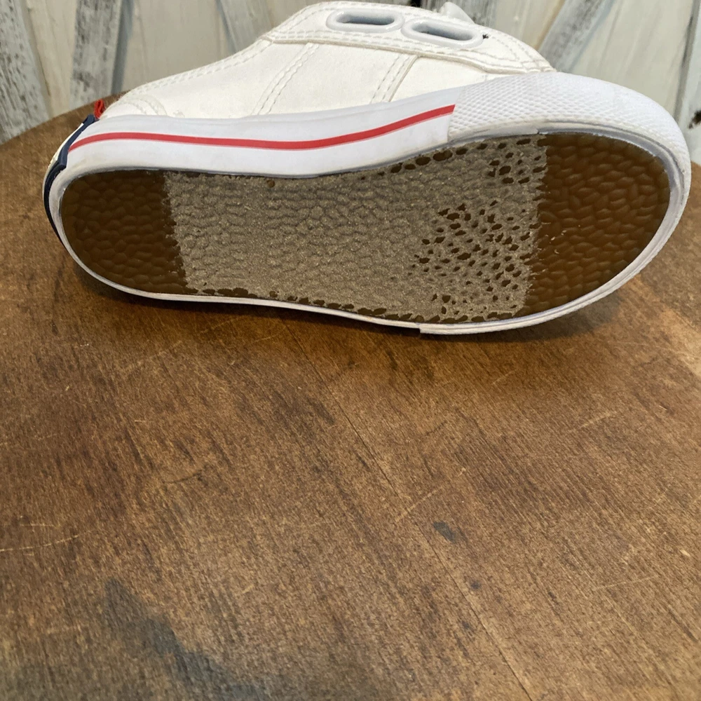 These white toddler size 8 sneakers for children with easy closure by Polo Ralph Lauren, (the iconic polo player on a horse is embroidered on the side of the shoe.) The shoes are in PRiSTINE condition, as they were worn ONCE. Please review all photos, feel free to reach out with any questions or for additional information or photos. Thank you for your interest..