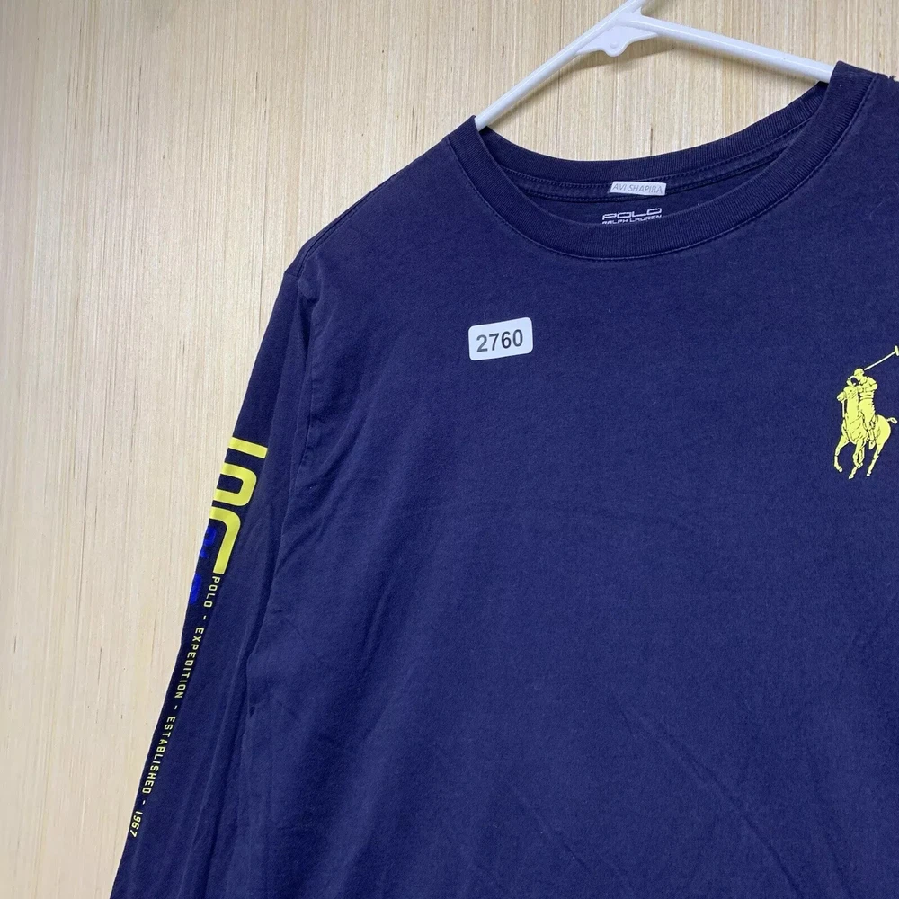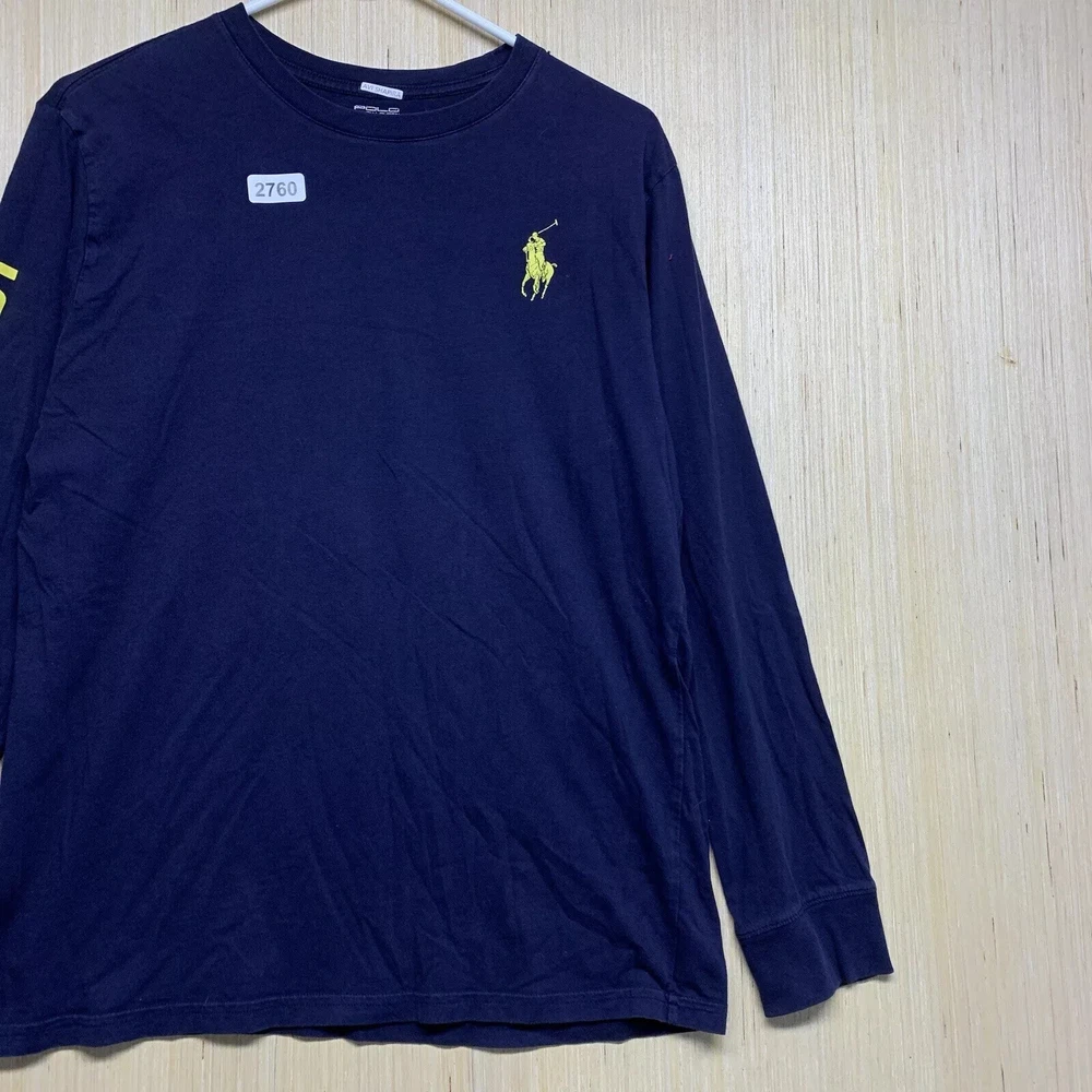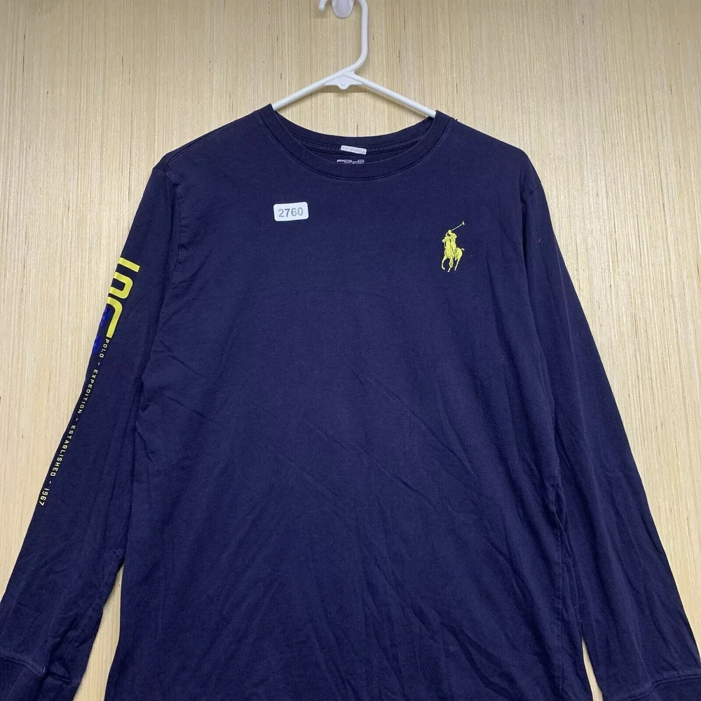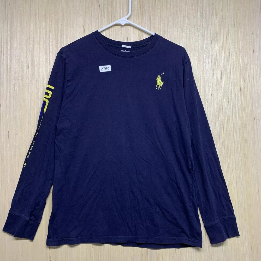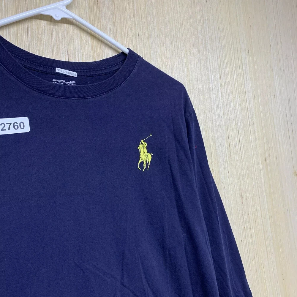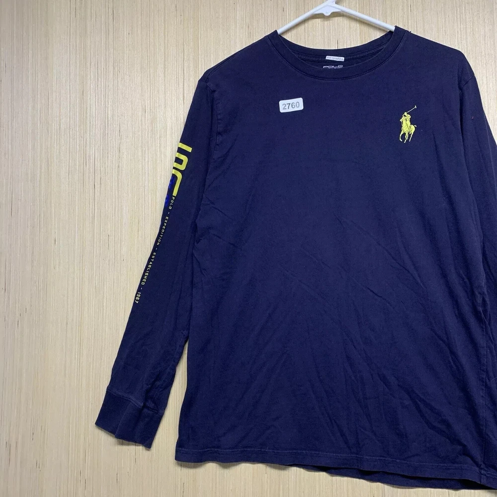Polo Shirt Adult Extra Large Blue Long Sleeve Men's Pullover Big Pony