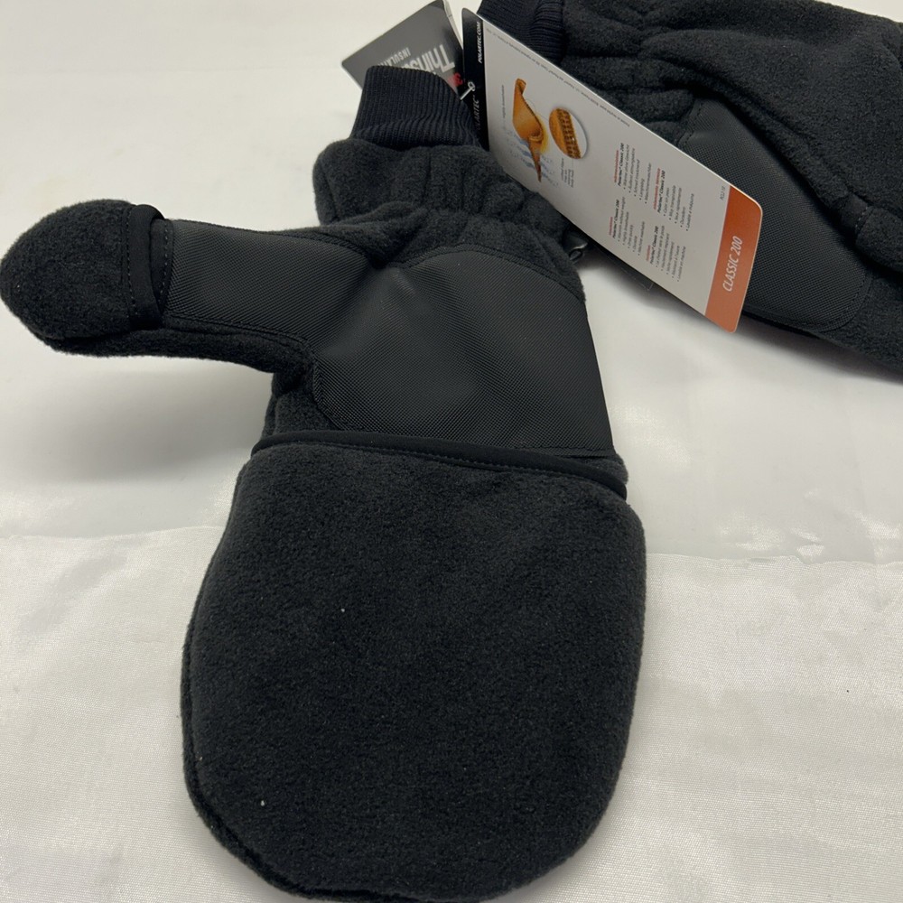 Polortec Classic 200 Black Fleece Fingerless Gloves Convertible Mittens 3-4 XL Recoil Thinsulate
